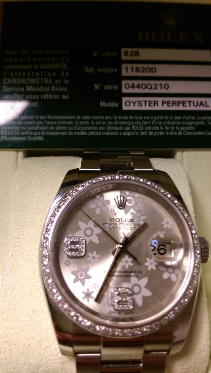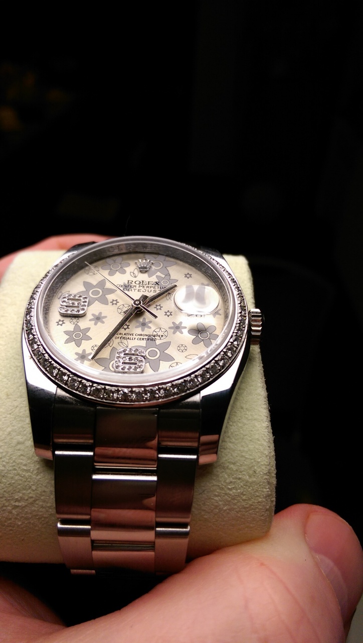 Продаю женские часы Rolex Oyster Perpetual 2013 года.Носились бережно.Дополнительно оформлены 70-ю бриллиантами по периметру и на цифрах .Коробка,карточка,инструкция в наличие.Цена 6900 usd.Торг при осмотре.