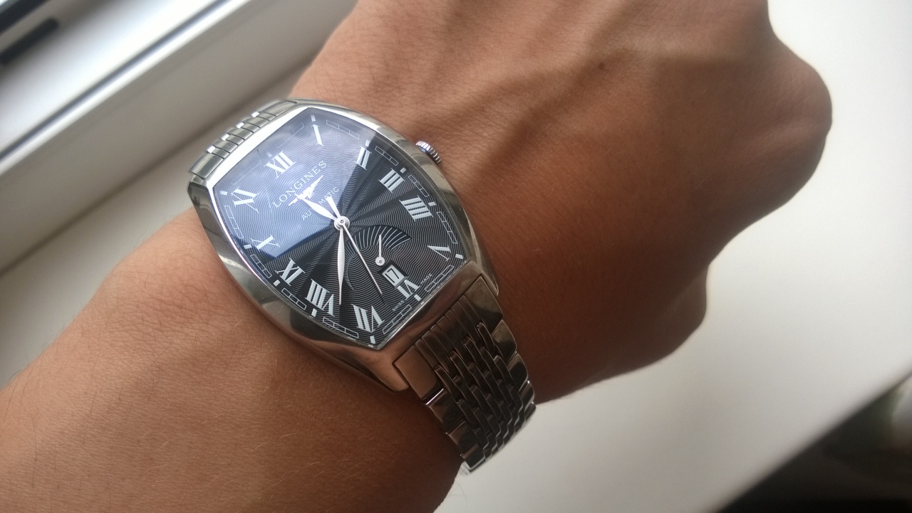 На стекле присутствует трещина 1-1,5 см(вверху, слева от 12, по направлению к 10 часам). В глаза не бросается, видна будет только хозяину часов. На эксплуатационных свойствах часов не сказывается.