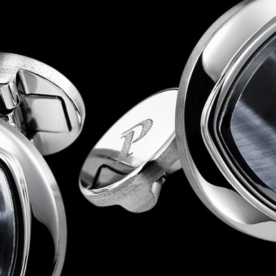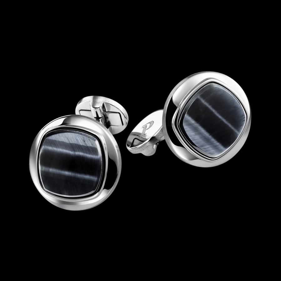 Запонки Piaget Emperador в форме «подушечка» из белого золота 18 карат и соколиного глаза.