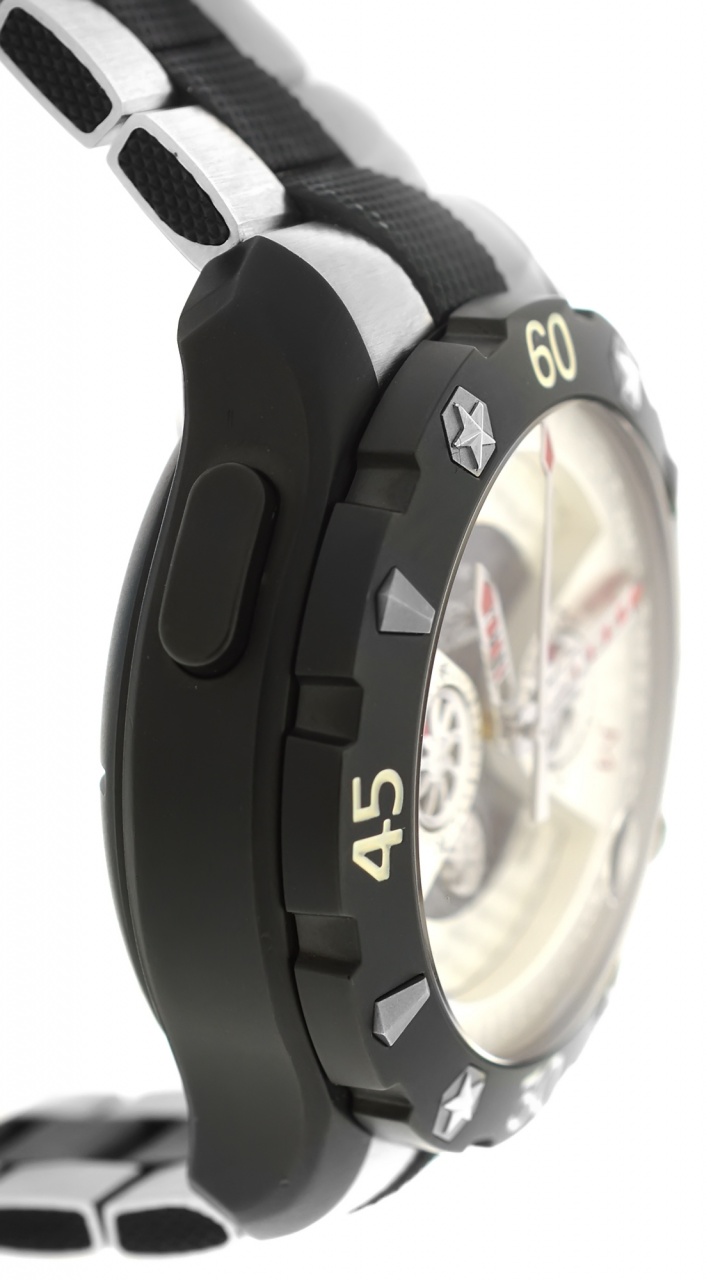 КОРПУС: титан/PVD покрытие, диаметр 46.5 мм, толщина 17 мм, вращающийся в одну сторону рант с 60-минутной шкалой, сапфировое стекло, завинчивающаяся заводная головка с защитным клапаном, водонепроницаемость 1000 м