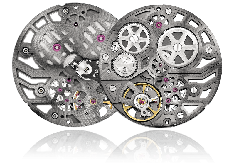 МЕХАНИЗМ: мануфактурный "скелетон" с ручным заводом HUB 1300