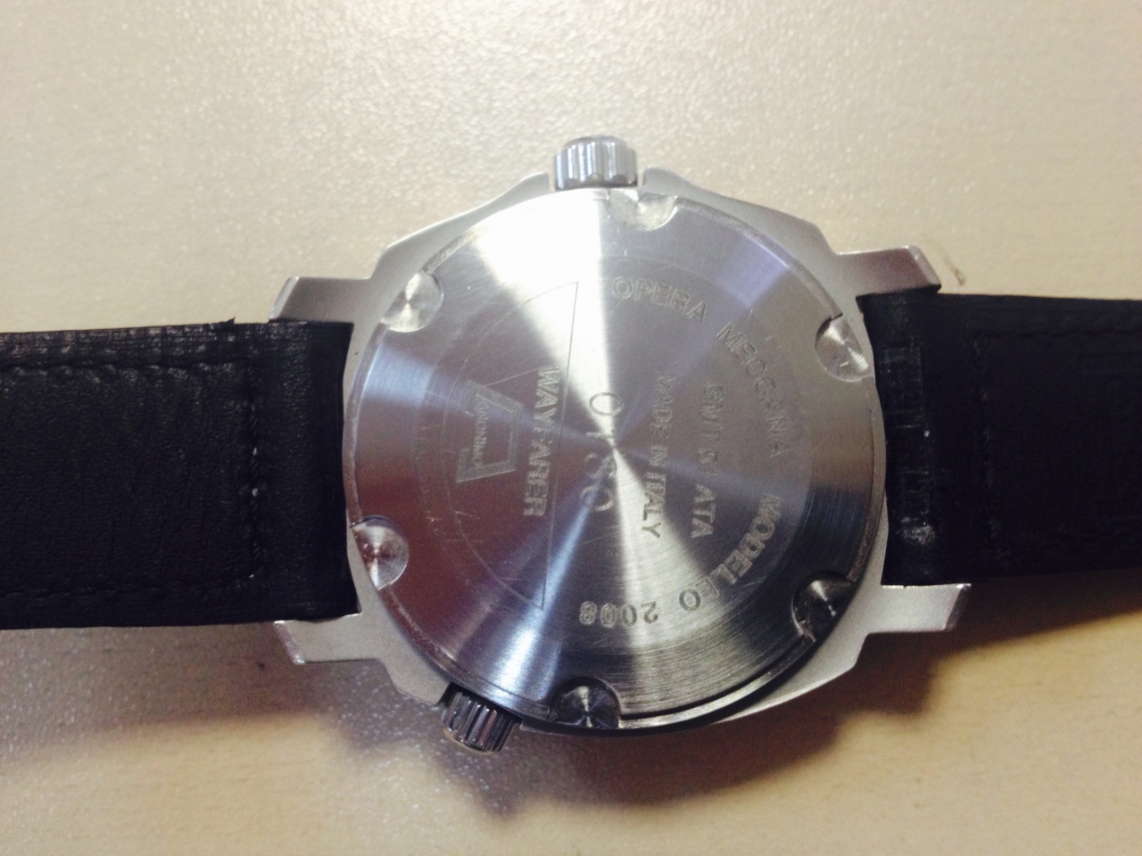 Ремешок: кожаный, черный, пропитан спец.составом Opera Kodiac, на обратной стороне стальной бакли надпись Anonimo