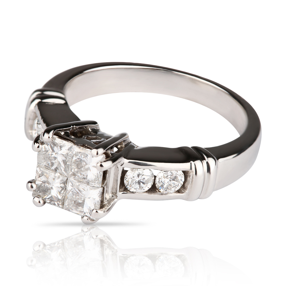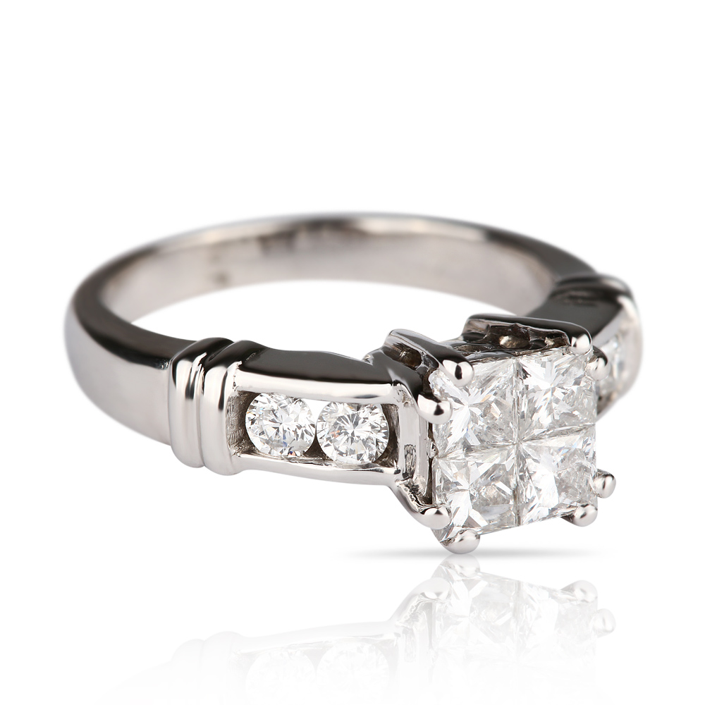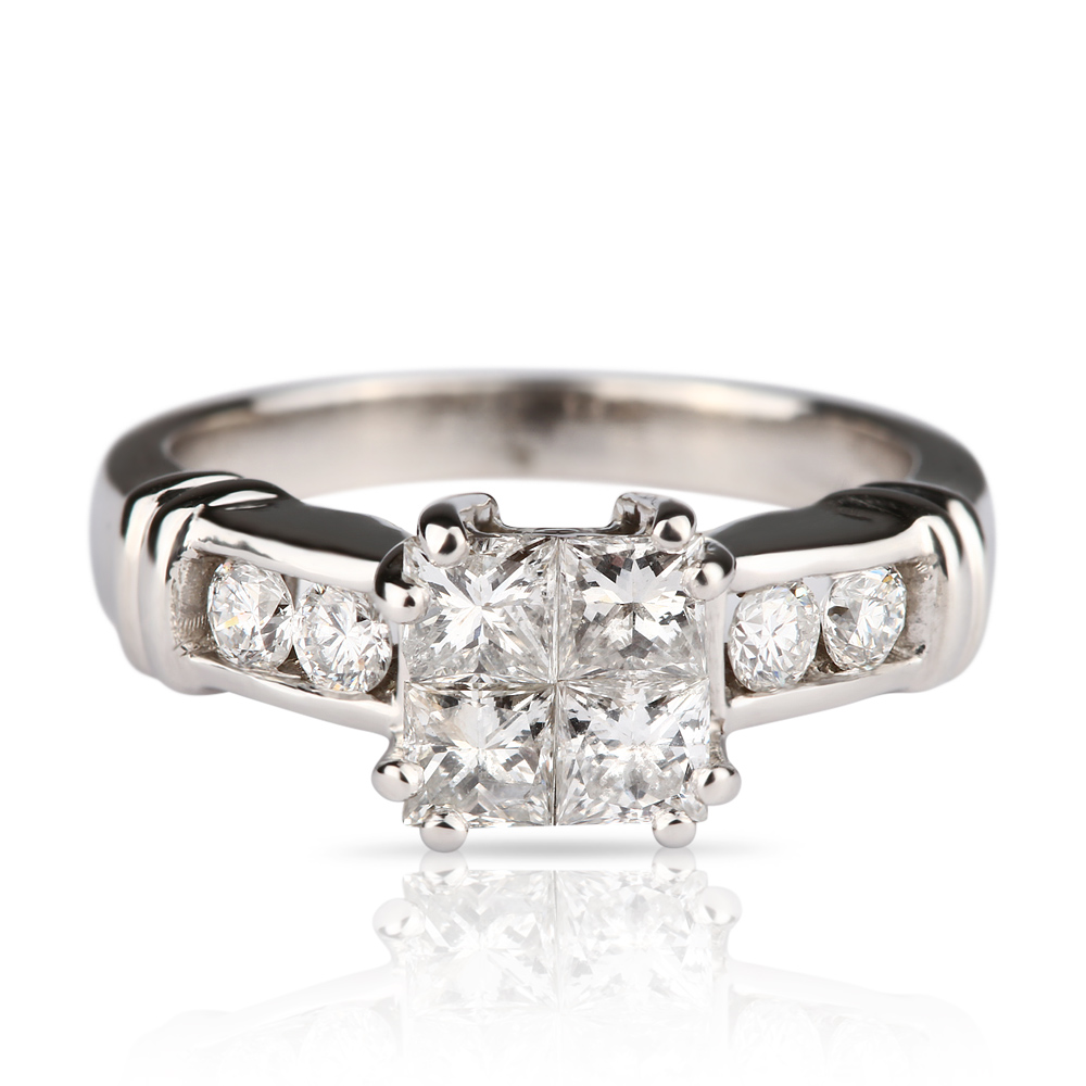 БРИЛЛИАНТЫ:4 бриллианта огранки "принцесса"- 0,76сt 4/4 - 5/6, 4 бриллианта круглой огранки - 0,24ct 4/4 - 5/6