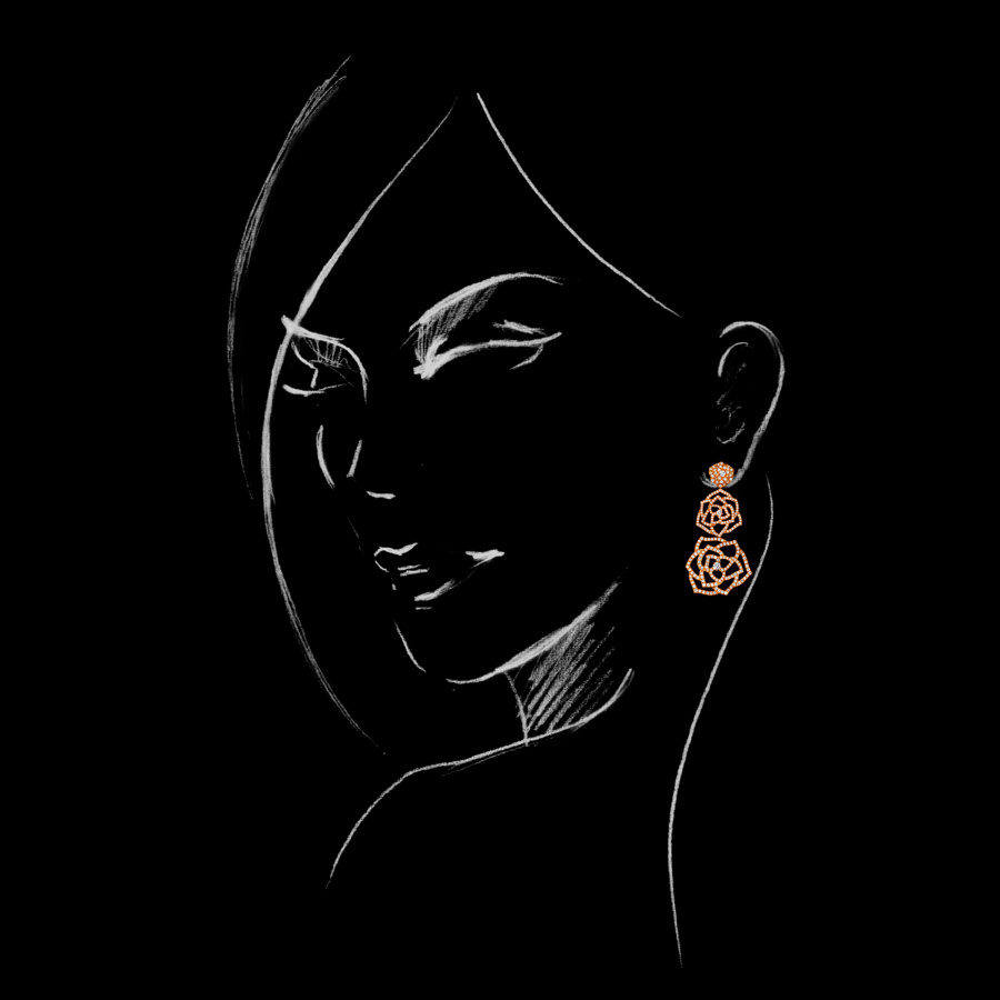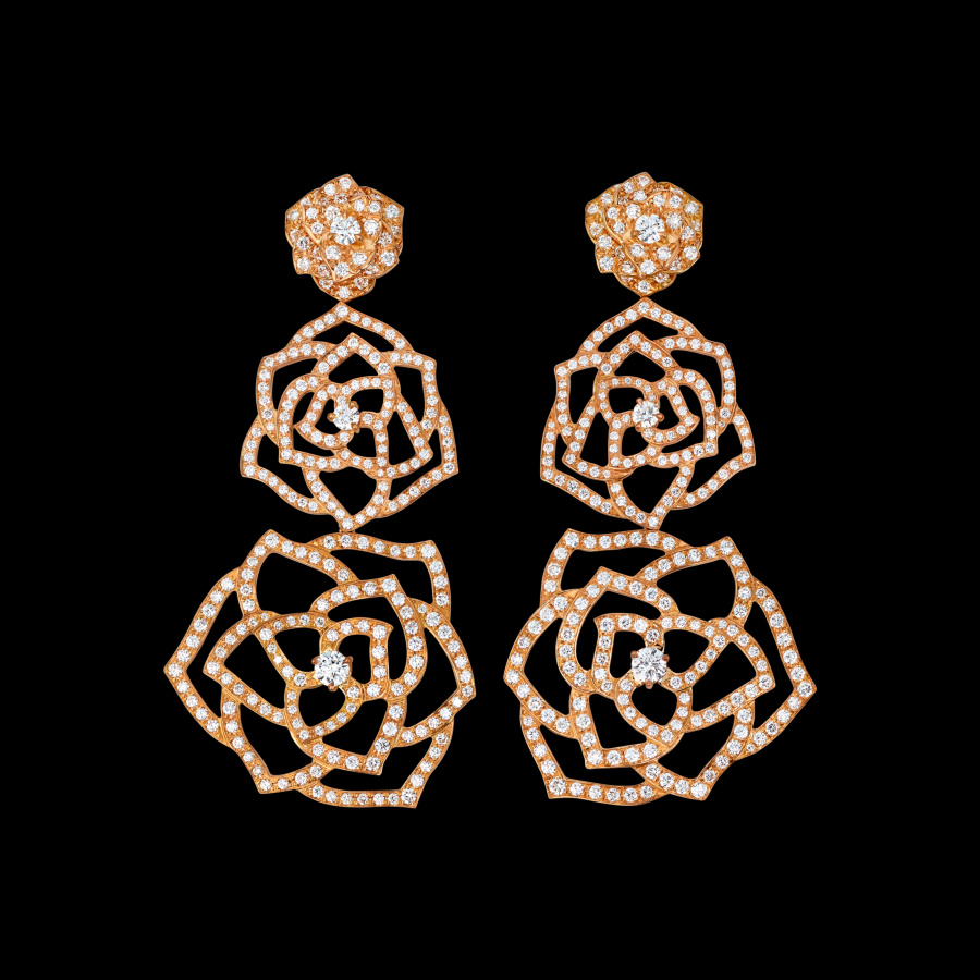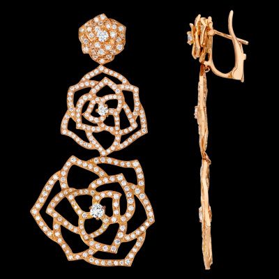 Серьги Роза Piaget из розового золота 18 карат с 544 бриллиантами круглой огранки (около 4,11 карата).