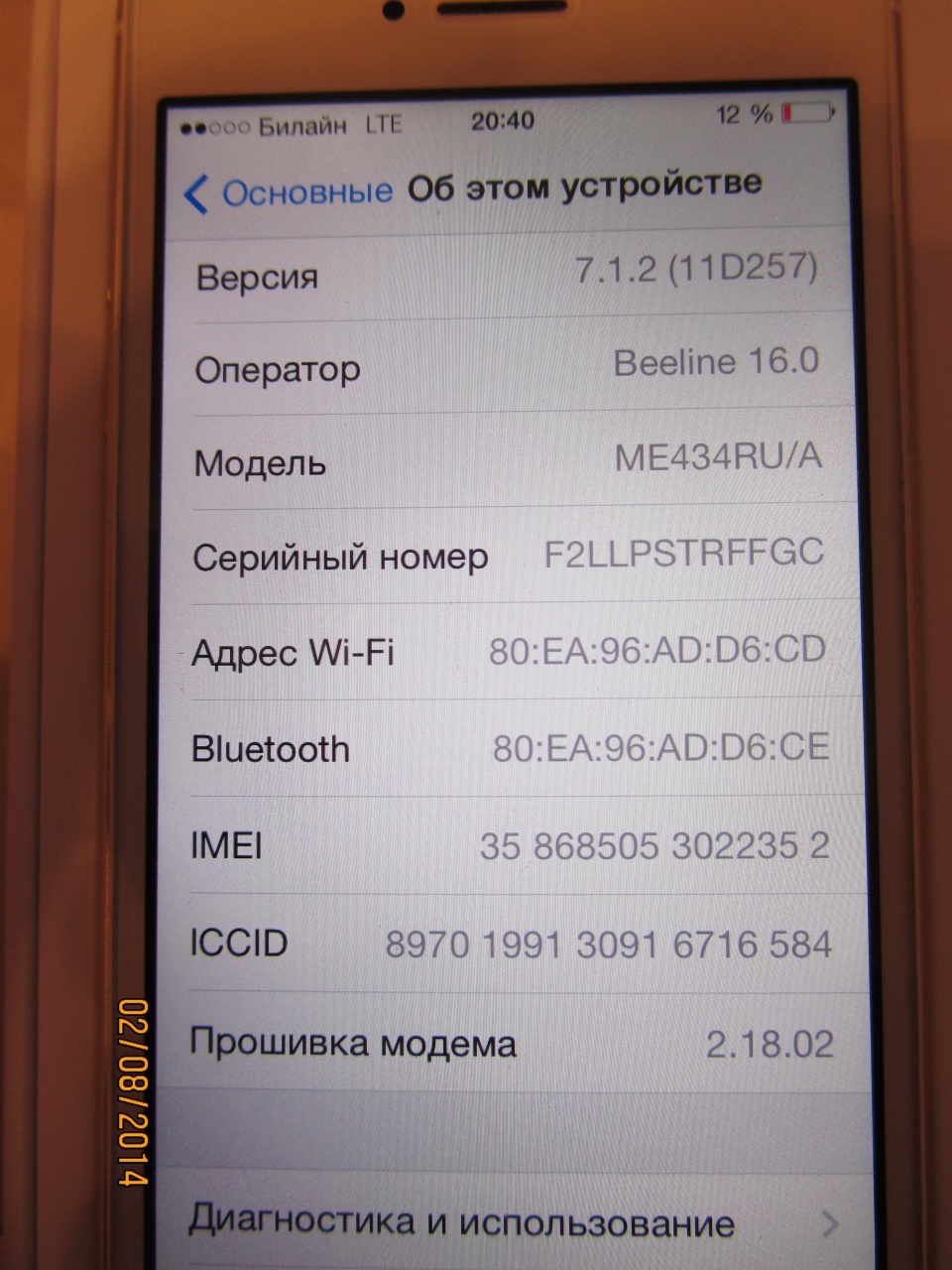 Поддерживает 7 диапазонов LTE частот (частоты 1, 2, 3, 5, 7, 8, 20), может работать в сетях Vodafone, EE и O2 в Великобритании. Кроме того, настоящий iPhone 5S A1457 поддерживает UMTS / HSPA+ / DC-HSDPA (850, 900, 1900, 2100 МГц) и GSM / EDGE (850, 900, 1800, 1900 МГц).