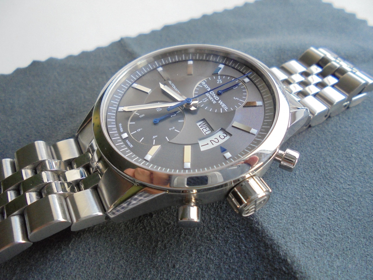 Очень красивые универсальные часы. Подойдут и под костюм, и под джинсы. Цвет универсальный. Браслет и корпус имеют очень эффектную двойную полировку - часть граней или деталей зеркальные, часть сатинированные матовые.