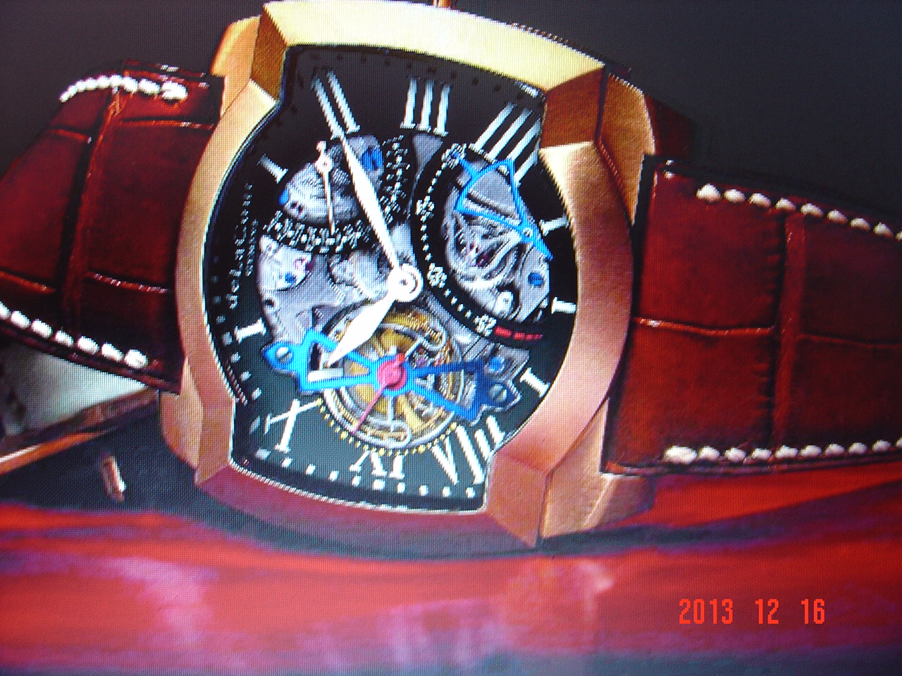 Красивые, большие мужские швейцарские часы 47 ч 49 х 12мм, розовое золото 18к (750пр)механика - автомат,римские цифры, черный циферблат, 3 стрелки, дата, прозрачная сапфировая задняя крышка, лимитированные. Двухсторонний ремень из кожи аллигатора сшитый вручную черного цвета, золотая застежка ,