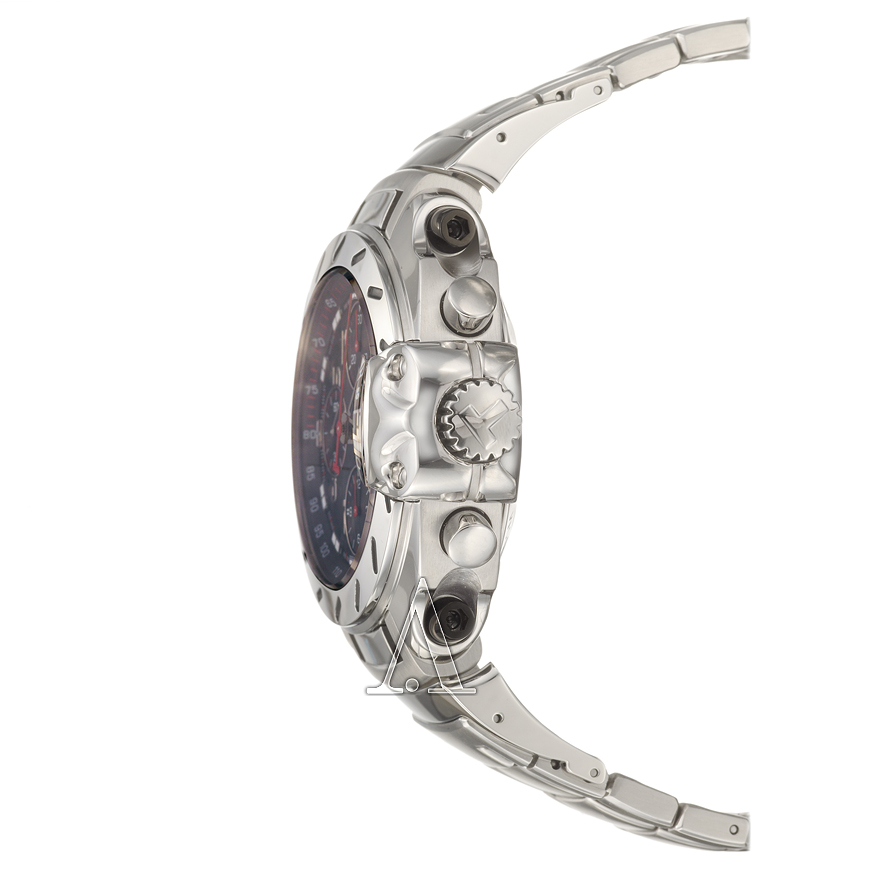 На дате объемная лупа. Заводная головка с накладкой стилизованы под ручку газа, а сам циферблат под приборную доску спортивного мотоцикла.