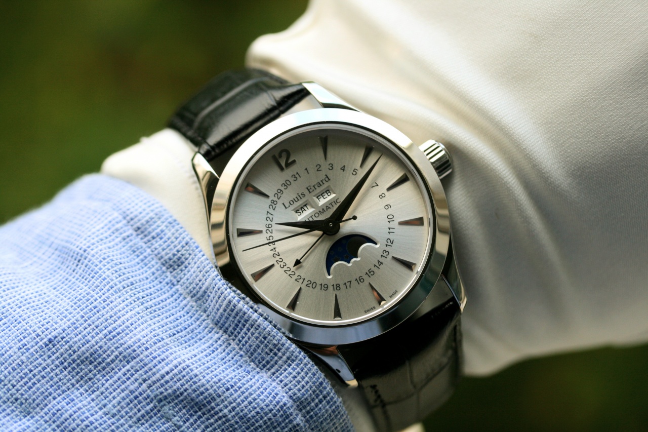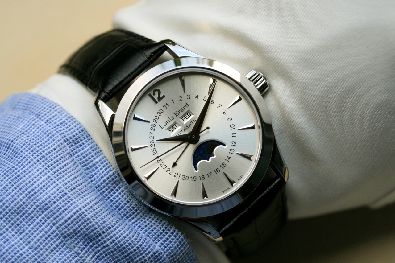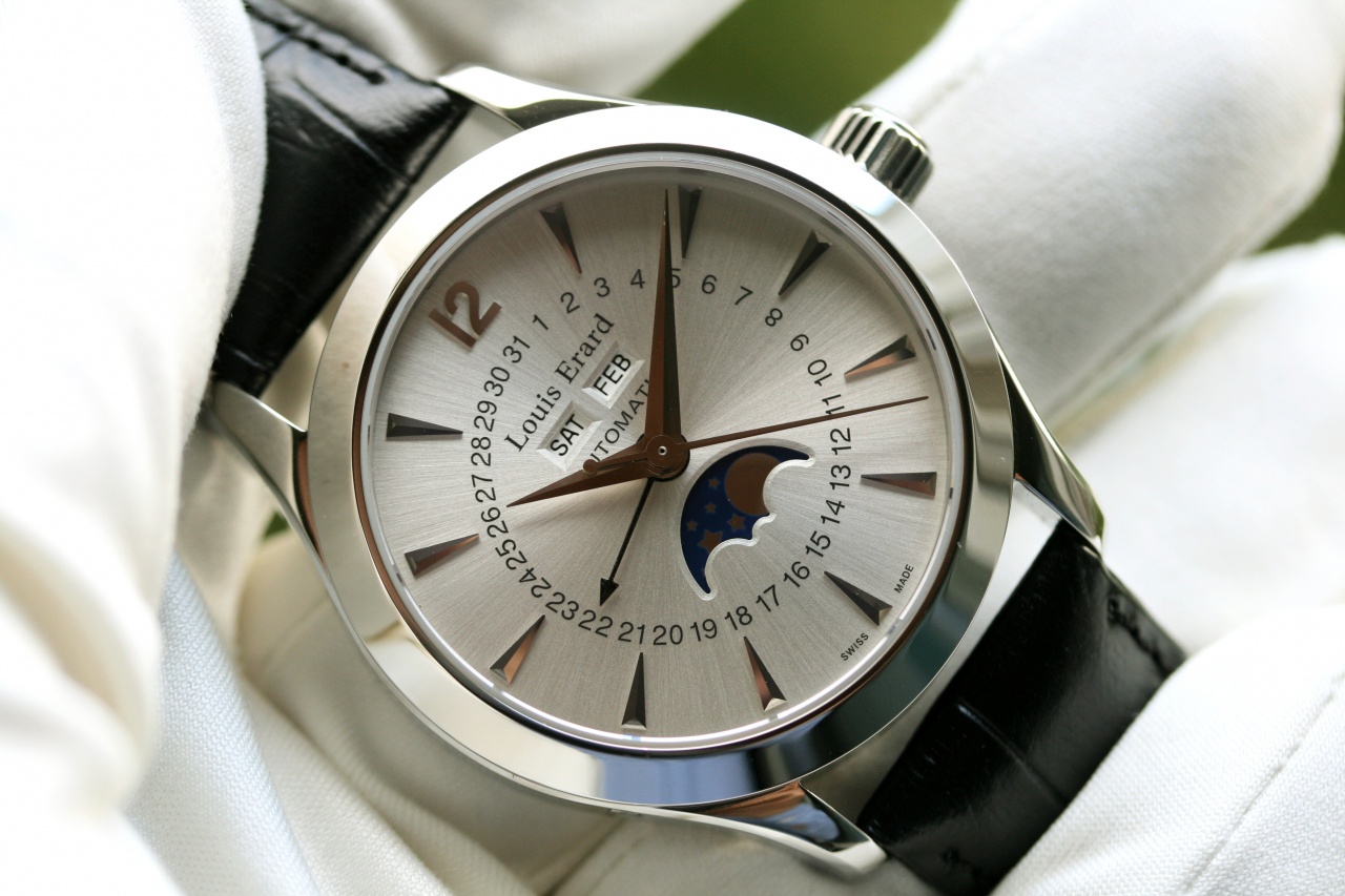 < < [полный календарь, фазы луны] LOUIS ERARD CLASSIQUE ** светлый цифер ** кожа > >