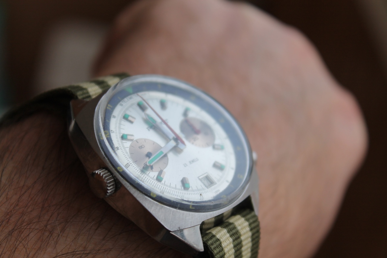 Отличные часики, прошли обслуживание у хорошего мастера (не дешево), все работает. Следы носки присутствуют, не полировались. Корпус сталь, что несомненный плюс относительно хрома.Бонусом коробочка