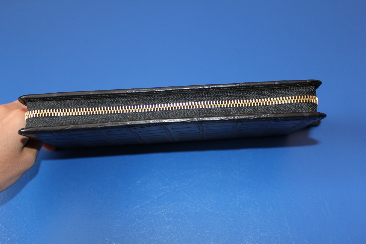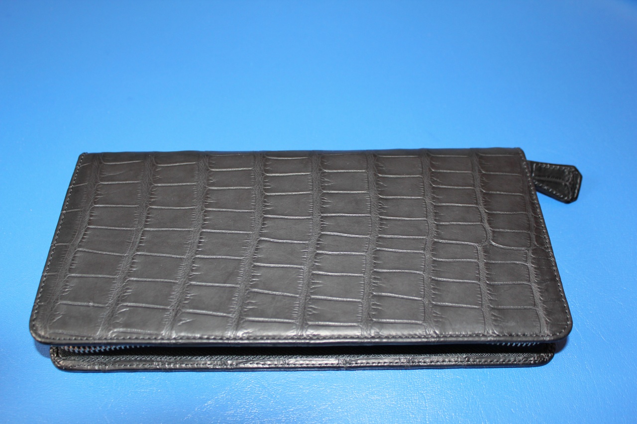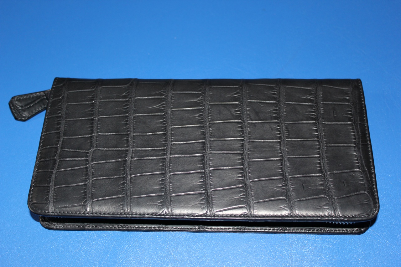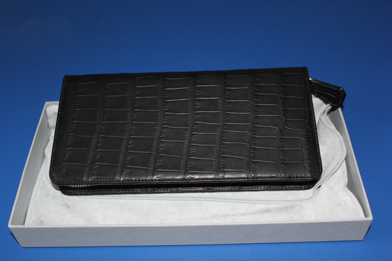 Продаю элегантный мужской клатч ручной работы «Brianza» из 100% кожи аллигатора высочайшего качества выделки с матовой поверхностью. Цвет черный. Изготовлен из куска кожи с живота аллигатора . Клатч застегивается на молнию и имеет пять больших отделений для банкнот, десять отделений для кредитных карт или визиток, отделения для чековой книжки, паспорта, водительских прав, авиабилета и других документов, ручки. В клатч можно положить мобильный телефон или смартфон. Внутри клатч отделан телячьей кожей черного цвета. ( Сейчас цена на аналогичные модели в Италии - 2.100 евро)