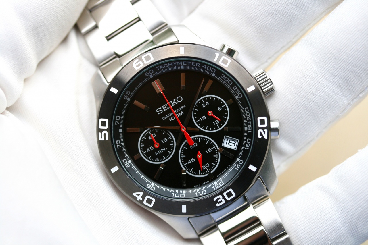 ~~~ [витринный экхемпляр] хронограф SEIKO ** черный цифер ** браслет ~~~