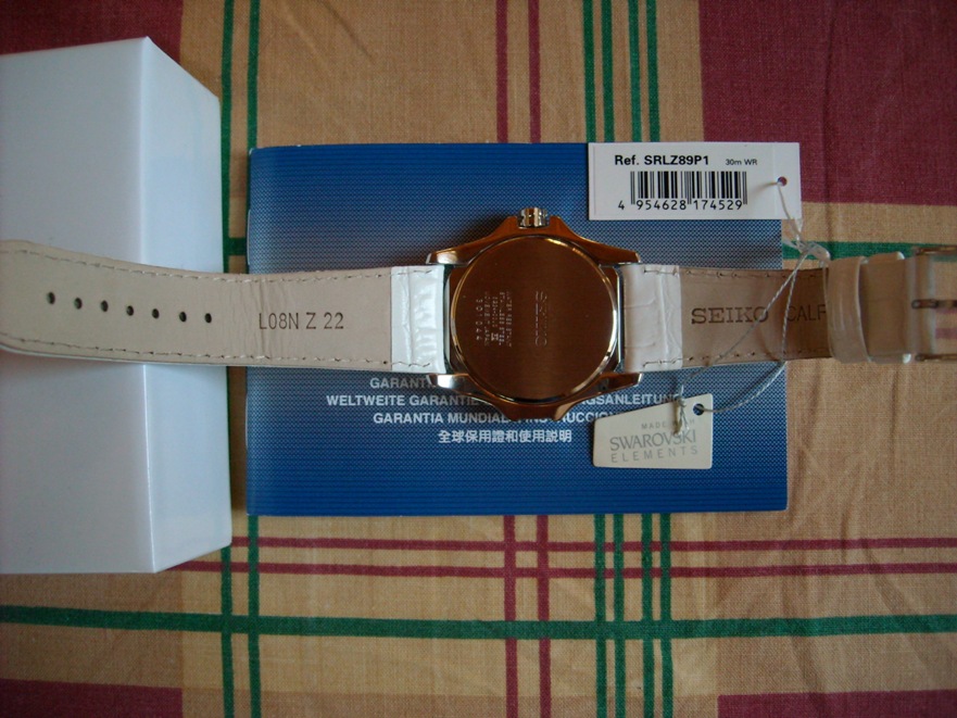 Секундная стрелка вынесена на отдельный циферблат. 12-ти и 24-х часовой формат времени. Ретроградный указатель дня недели. Заводная головка с защитой. Тип механизма: кварцевый ; Корпус: Нержавеющая сталь, Циферблат: белый; Браслет: кожаный ремешок; Камень-вставка: корпус украшен кристаллами Swarovski; Стекло: минеральное повышенной прочности Hardlex; Календарь: число, день недели; Габаритные размеры: D 39,5мм, толщина 9мм. Водозащита: 30WR. Механизм 6G34. Инструкция, международная гарантия.