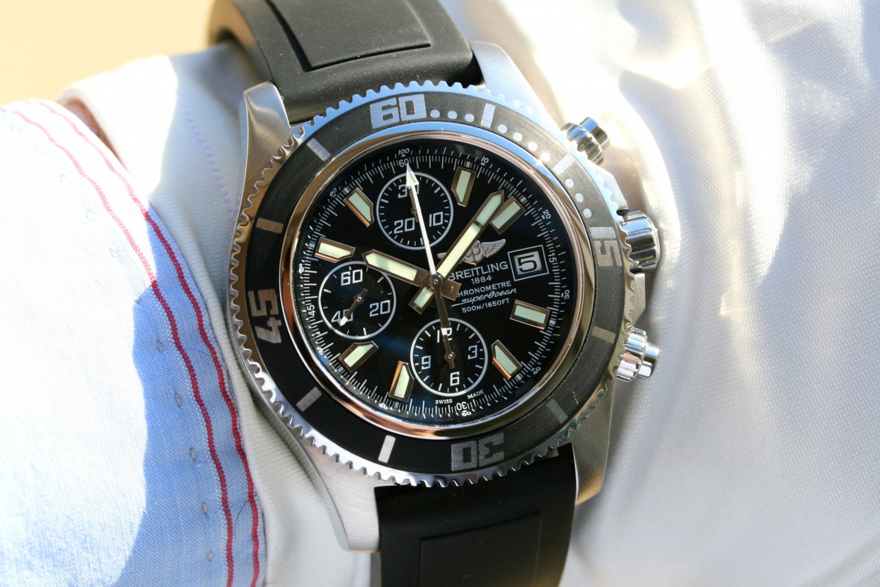 < < < [хронограф] BREITLING SUPEROCEAN II * черный цифер * каучук с клипсой > > >