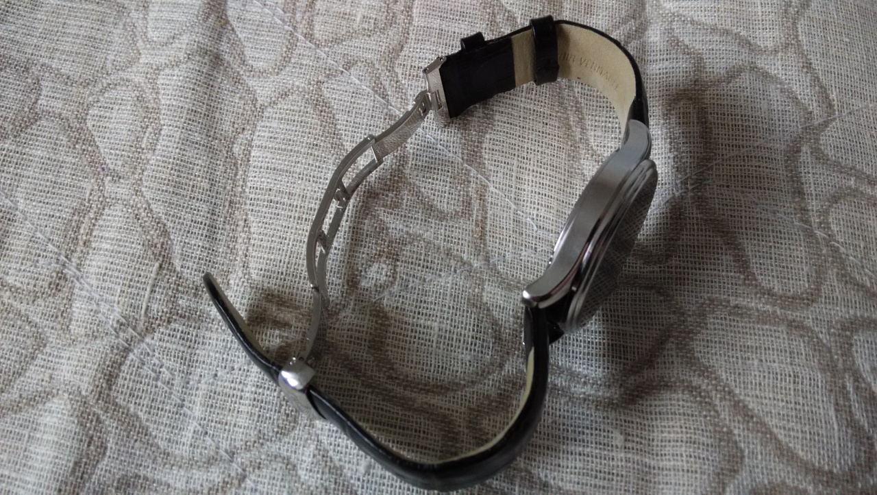 Стальной корпус, автоподзавод, ремешок - натуральная кожа. Влагозащита 5АТМ.