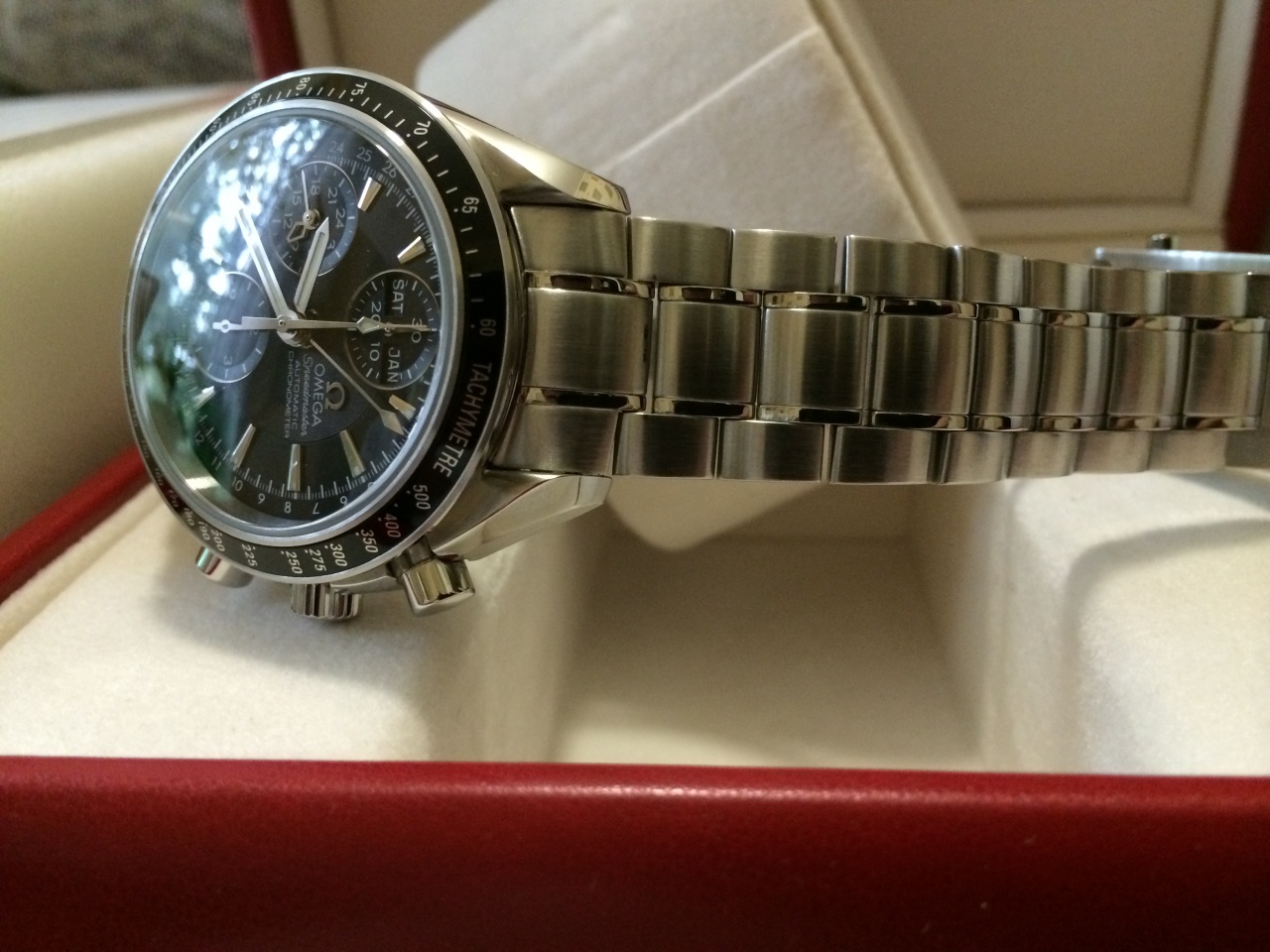Данная модель имеет черный циферблат с устойчивым к царапинам сапфировым стеклом и шкалой указателя даты. Малая секундная стрелка находится на одном вспомогательном циферблате с 24-часовой стрелкой; на вспомогательном циферблате 30-минутного счетчика в положении «12 часов» имеются окошки указателей дня недели и месяца; еще один вспомогательный циферблат предназначен для 12-часового счетчика. В центре находятся следующие стрелки: часовая и минутная, секундная стрелка хронографа, стрелка указателя даты. Черный безель с тахиметрической шкалой закреплен на корпусе диаметром 40 мм из нержавеющей стали. Часы дополняет браслет из нержавеющей стали. Основу этих часов составляет механический калибр OMEGA 3606 с хронографом.