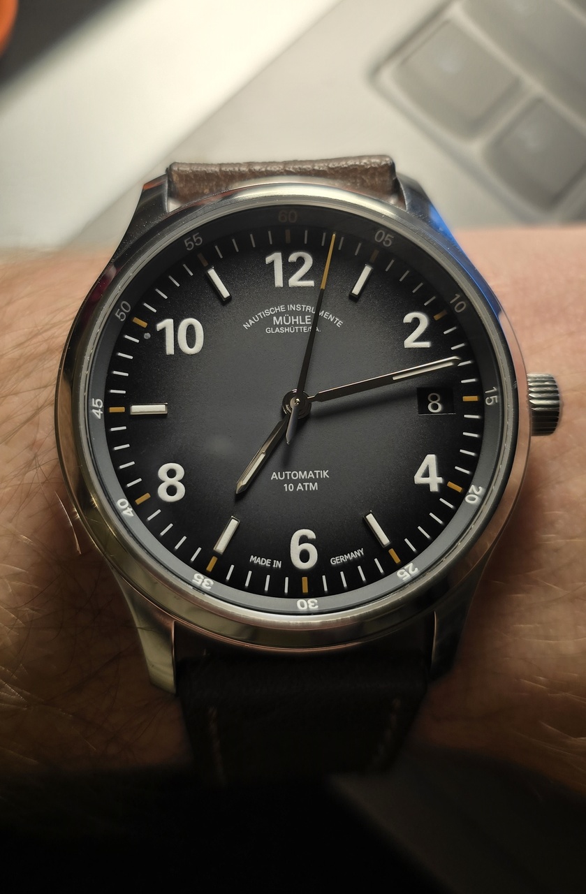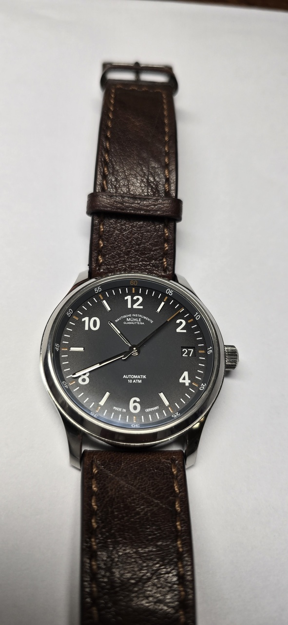 В общем, часами я доволен, для работы подходящий вариант. На них приятно лишний раз просто так посмотреть, не ради времени, а ради удовольствия. На руке сидят удобно, не высокие, под рубашку вполне помещаются. Радует, что из Glashütte – часовой «столицы» Германии. Понравилось многое именно из Mühle, но они оказались ещё более великоваты для моей худой руки.