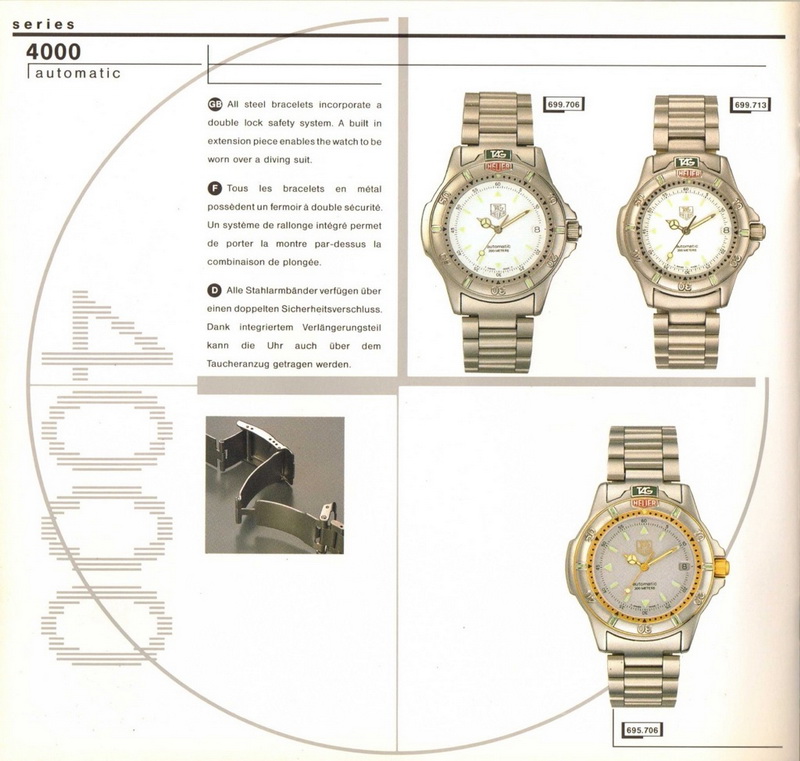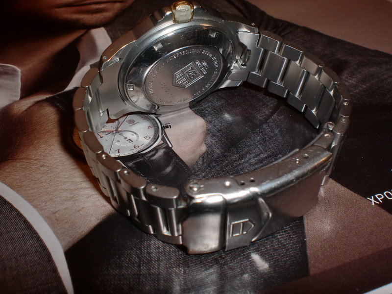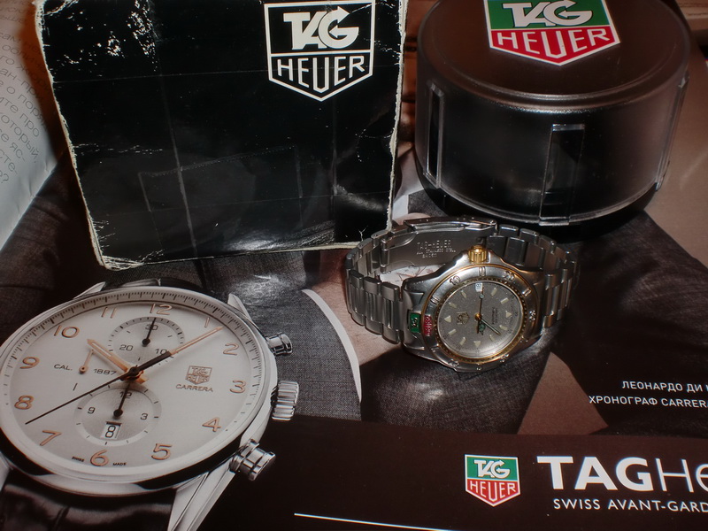 Часики – заслуженный ветеран из некогда топовой линейки 4000, выпущенный Tag Heuer уже после 1992-го (ref модели – буквы и цифры). Носились на удивление аккуратно, но следы времени имеются. Из недостатков: проношена заводная головка со стороны, прилегающей к кисти. Правда, знает об этом лишь хозяин часов – при ношении проноску не видно. Резьба же на головке в полной исправности.