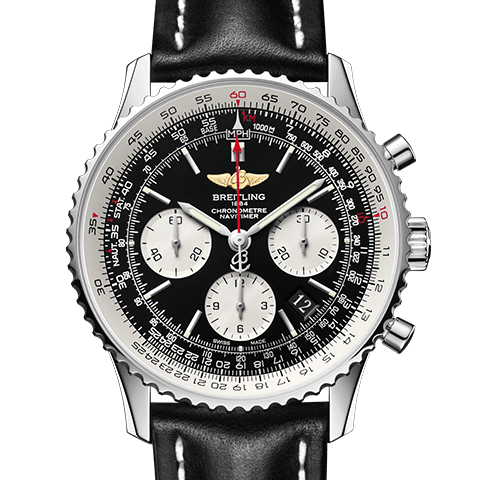 Поставляется на титановом браслете или на черном кожаном ремешке с контрастной оранжевой прошивкой и с титановой застежкой.