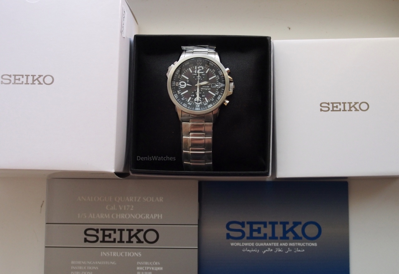 Кварцевый хронограф с функцией 12-ти часового будильника и подзарядкой аккумуляторов от солнечного света. Калибр V172