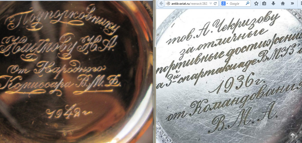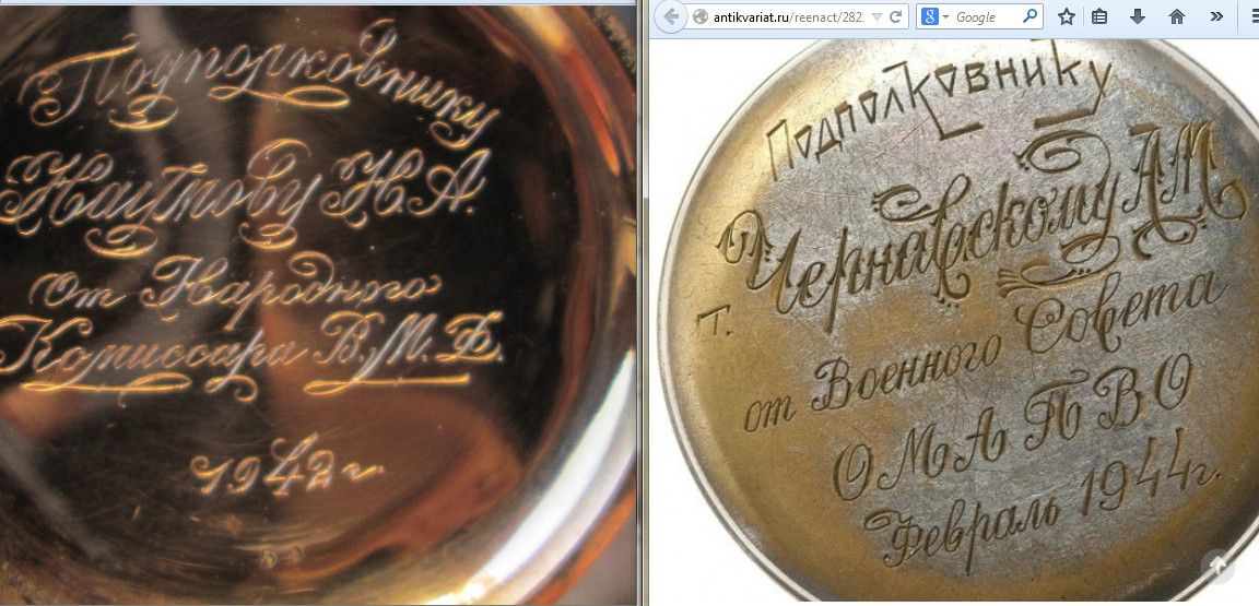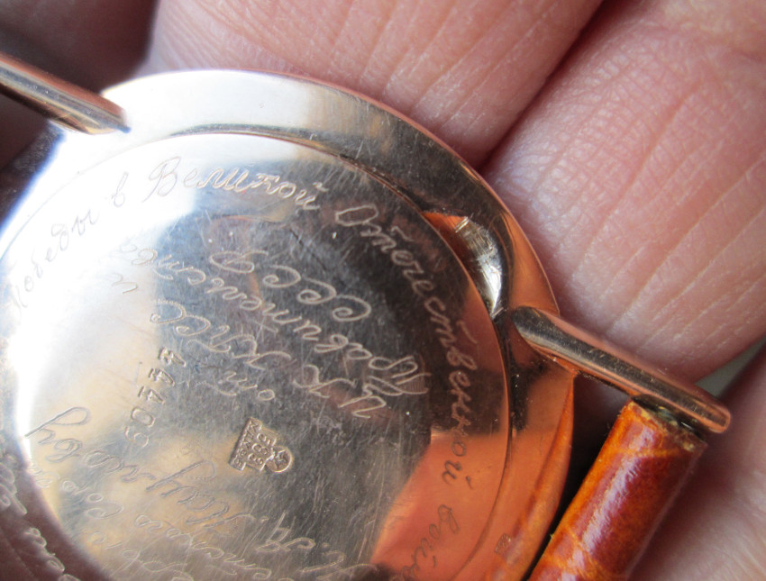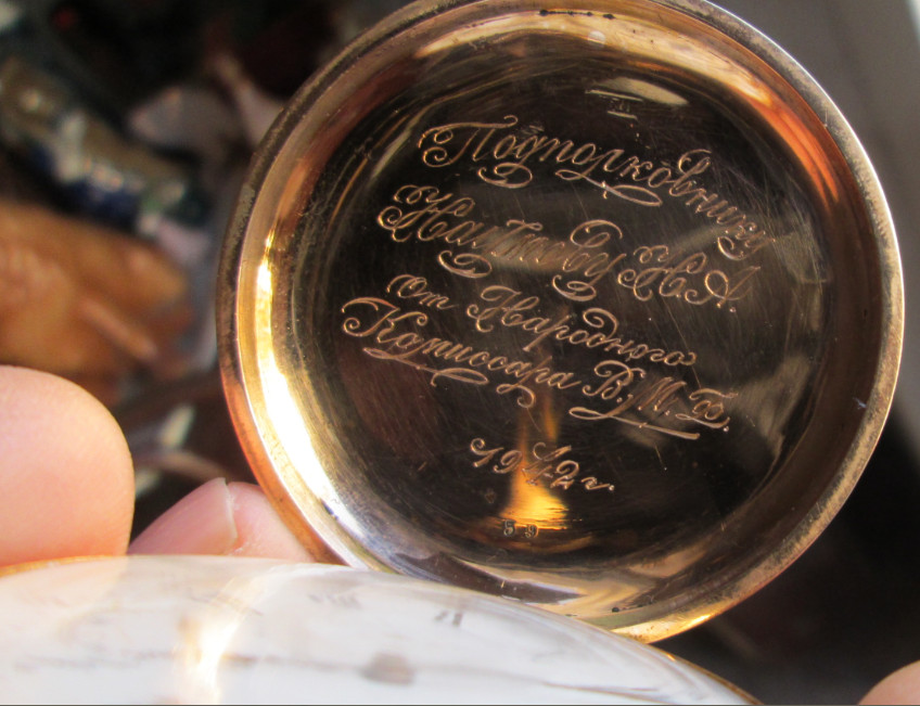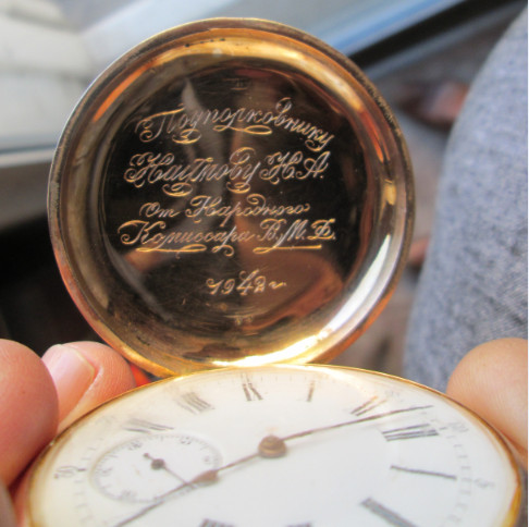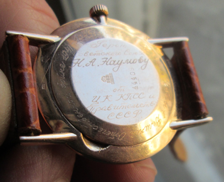 Нынешний хозяин часов-старый коллекционер антиквар,лично знал кавалера этих наградных часов .После смерти кавалера,когда поднялся вопрос о том кому передать (за соответствующее вознаграждение) на постоянное хранение боевые награды адмирала,включая эти часы,мой приятель ,стал обладателем всех наград.