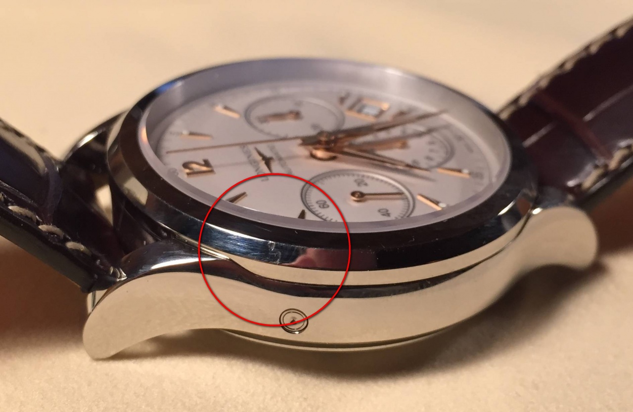 Спросил жену: говорит не била, не роняла. Да я сам часто часами о предметы задеваю: у меня на двух даже на сапфировом стекле сколы. Но винты как-то не выкручивались.