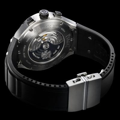 Хронограф с функцией flyback, указатель времени второго часового пояса в положении «9 часов» (24 часа), указатель даты в положении «12 часов», часы, минуты, минутный счетчик в положении «3 часа» (30 минут), малая секундная стрелка в положении «6 часов»
