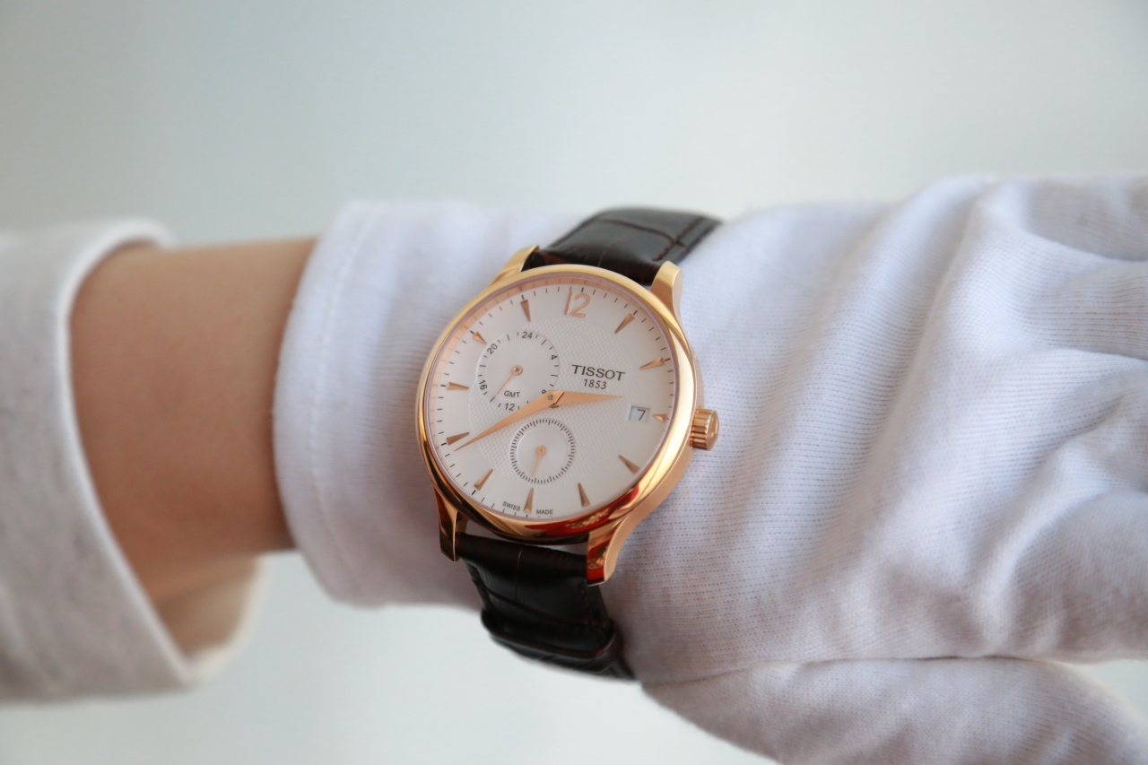 TISSOT Tradition GMT T0636393603700 Gold tone / Светлый цифер / Кожа (с витрины) - Часовой форум Watch.ru