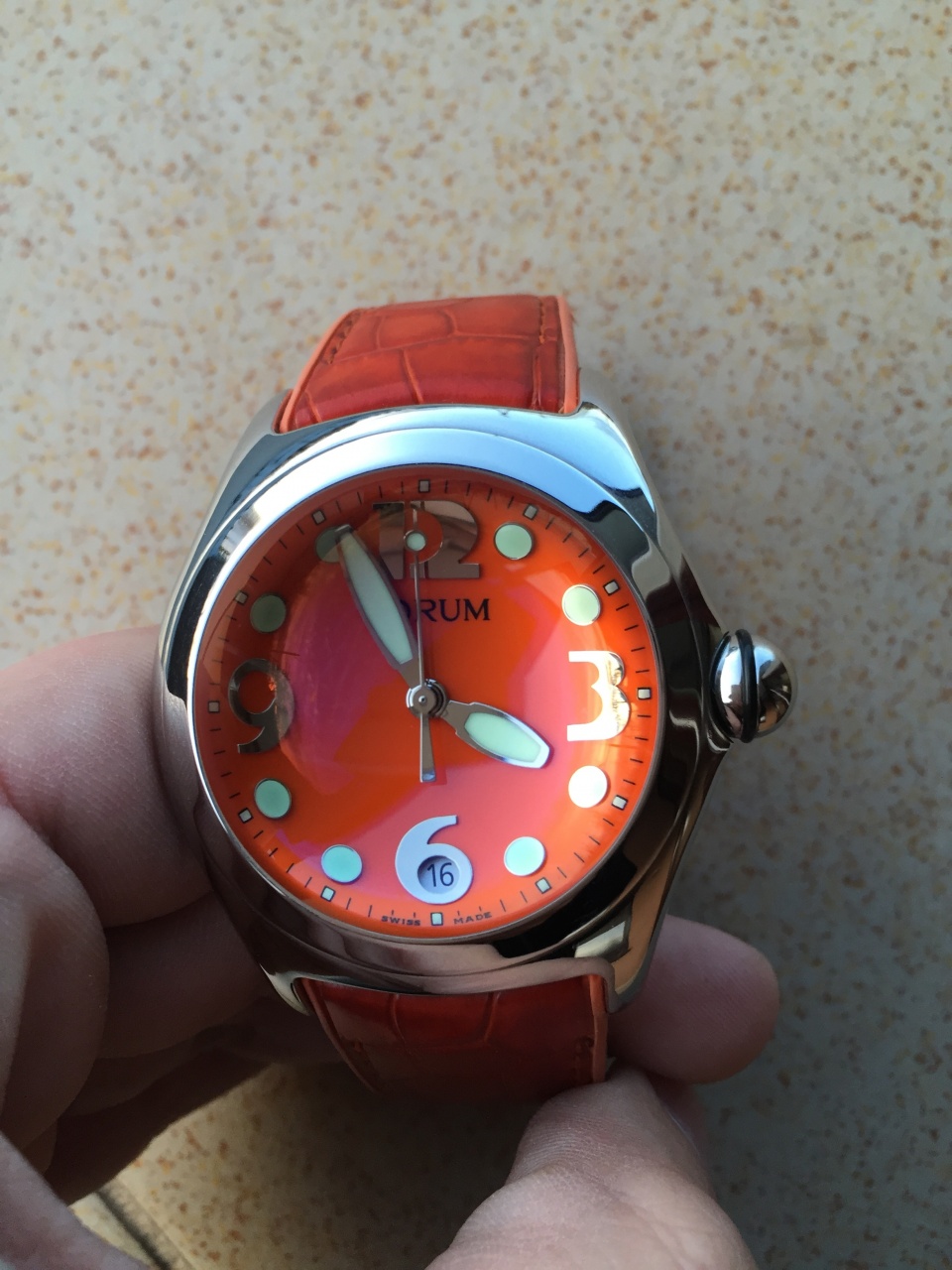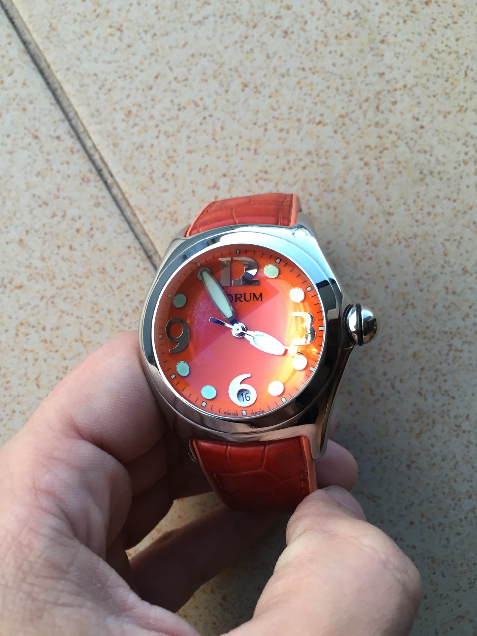 Представляю к продаже кварцевый Corum Bubble оранжевого цвета.