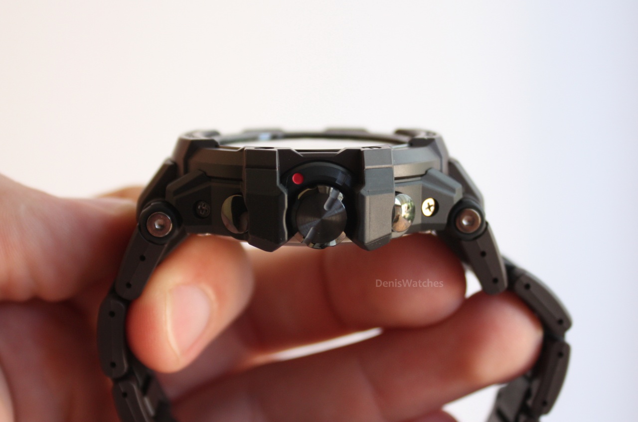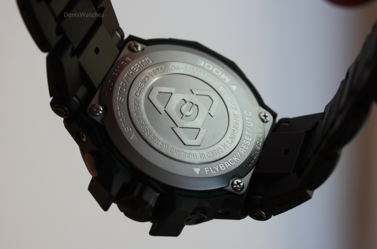 G-Shock Gravity Defier. Питание от солнечной энергии, индикатор низкого заряда батареи. Необритовое светонакопительное покрытие обеспечивает длительное послесвечение в темноте даже после кратковременного нахождения на свету. Ударопрочная конструкция защищает механизм от ударов и вибрации. Тройная защита от воздействия гравитационной, центробежной и вибрационной сил. Функция автоматического сохранения энергии. Время работы аккумулятора без подзарядки - 6 месяцев, при включенной функции сохранения энергии - 29 месяцев. Коррекция текущего времени радиосигналом на территории почти всей Европы, США, Японии и Китая. Встроенный датчик температуры от -10° до +60°С с точностью 0,1°C. Секундомер с точностью показаний 1/20с и временем измерения 2ч. Таймер обратного отсчета от 1мин до 1ч. Мировое время. Звуковой сигнал - в установленное время издается тональный сигнал. Электронная заводная головка с защитой.