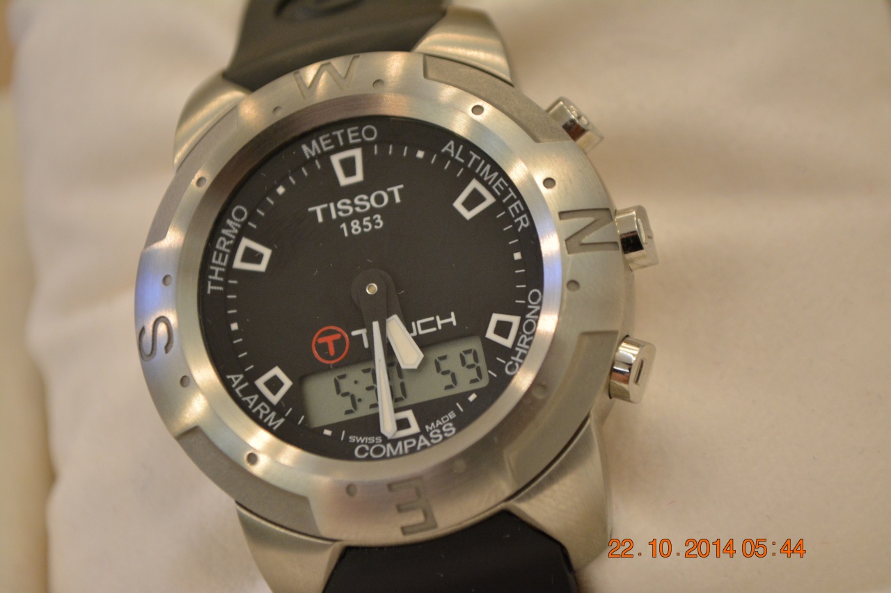 Часы с сенсорным циферблатом. В часы встроены секундомер, будильник, компас, барометр, термометр, альтиметр, индикатор запаса хода