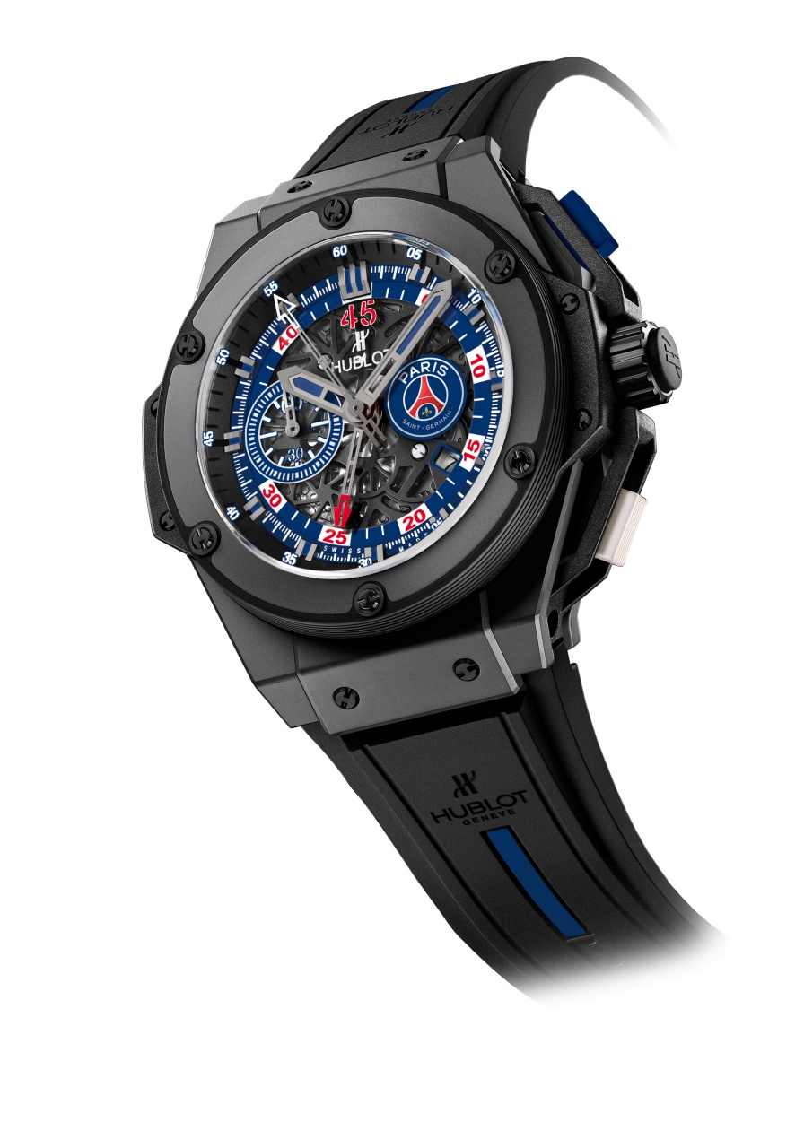 Новая лимитированная модель 200 экземпляров от компании Hublot посвящена французскому футбольному клубу PARIS SAINT-GERMAIN. Новинка с одноименным названием Hublot King Power Paris Saint-Germain теперь является официальным хронометристом парижского клуба. Игроки клуба: Edinson Cavani, Thiago Silva, Yohan Cabaye, Gregory Van Der Wiel и Salvatore Sirigu были приглашены в мастерскую часовой академии Hublot для того, чтобы принять участие в сборке часов вместе с профессиональным часовщиком. Часы выполнены в цветовой гамме футбольного клуба. В комплекте с часами идёт футболка клуба PARIS SAINT-GERMAIN с подписью всех игроков.