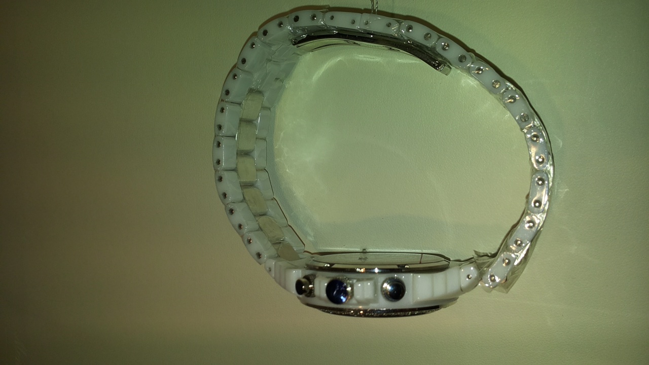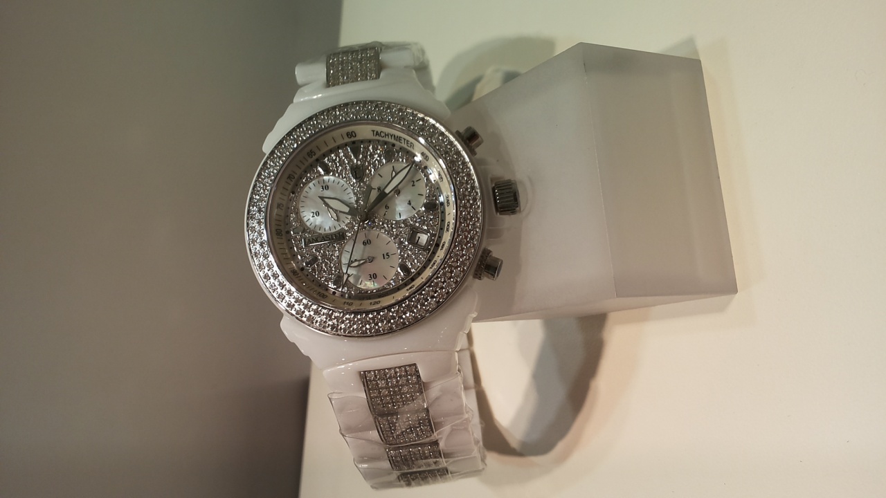 Корпус: белая керамика, безель украшен бриллиантами.