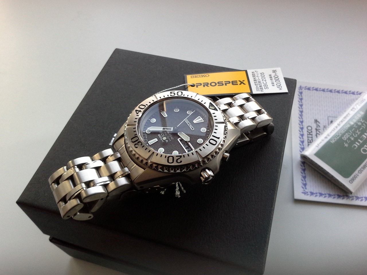 Продам Seiko Prospex SBCZ005 Kinetic Diver из внутренней Японской коллекции, были куплены месяц назад на Rakuten(е) за 400 долл.сша.Примерялись,были сняты плёнки,поэтому снижена цена.Часы небольшие и очень лёгкие -всего 79 грамм!Корпус из матового титана,размеры:по безелю 40 мм,с головкой 43,5 мм,с ушками 46 мм.Толщина 12,8 мм.Безель титан,комбинированный - браш и полировка.Циферблат грифельно-серый,все индексы-металл,накланные,а не нарисованные,как у Сумо или Монстра.Очень яркий люм на стрелках и метках.Браслет титан,сатинированный с полированными боками.Застёжка с фиксатором и удлинением на гидрокостюм.Механизм AGC(кинетик) 5м63,аккумулятор на 15 лет, ресурс 6 месяцев в покое,точность хода +1-2 секунды в месяц.Все фото продаваемых часов мои,на задней крышке дата изготовления-седьмой месяц четырнадцатого года.Часы на полном комплекте,с дилерской гарантией на 1 год.Любые проверки на оригинальность/новизну.