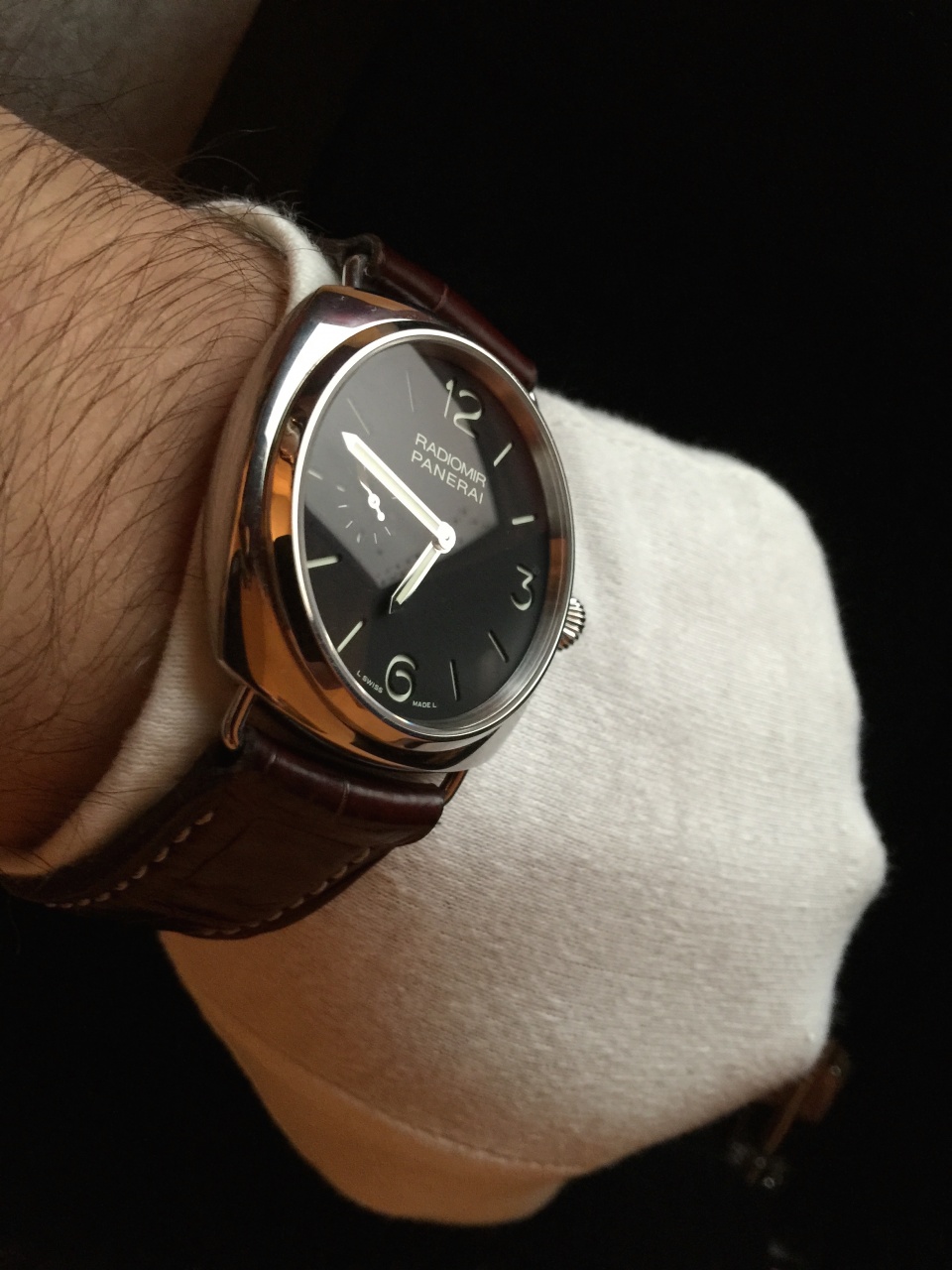 В продаже изящный Officine Panerai Historic Radiomir PAM00337 . Часы в отличном внешнем и техническом состоянии, не полировались. Полный комплект коробок и документов.