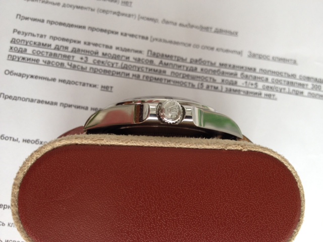 Предлагаются надежные,ухоженные часики. Модель известна, поэтому о самих часах: приобретены новыми на форуме, полировка делалась в меркури, устраняли легкие царапины, ими же и сотворенные, заодно и обслужили. О состоянии часов имеется заключение сервис центра (на фото), часы без забоин, царапин и прочих дефектов. Комплект полный, точность хода, если заниматься "камасутрой", и на ночь оставлять их 12 часами вверх - 0 с/с. Причина возможного расставания-подсел на субмаринер. Обмен не интересен.