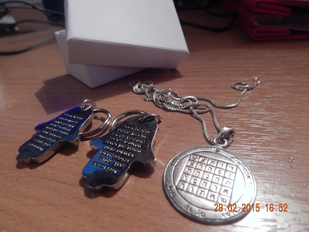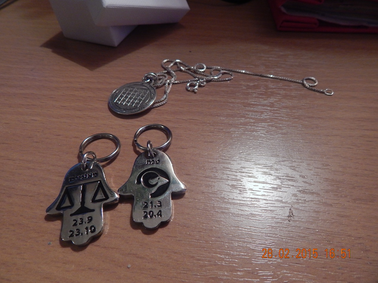 Подарок: Два оберега с молитвой на иврите( весы и овен)