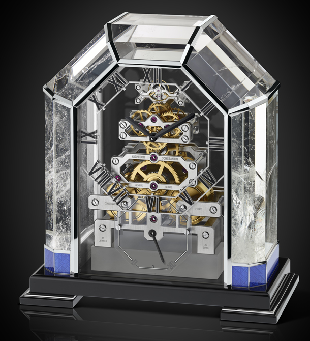 Почти два с половиной столетия Vacheron Constantin проектирует и создает подлинные шедевры часового искусства. Каждое из этих творений обязательно регистрируется в архивах, хранящих долгую историю Дома. 2015 год станет особым: Мануфактура отпразднует 260 лет своего существования. В честь знаменательной даты Vacheron Constantin представляет новые творения в коллекции Métiers d’Art. 12 настольных часов из хрусталя вновь доказывают оригинальный подход и искусство мастеров компании. Каждые часы оснащены новым механизмом от Vacheron Constantin с регулятором хода с постоянным натяжением и 30-дневным запасом хода. Модели серии планируется поэтапно представлять публике на протяжении всего года, а эксклюзивная презентация первых часов из горного хрусталя состоится в рамках Международного салона Высокого часового искусства, SIHH 2015.