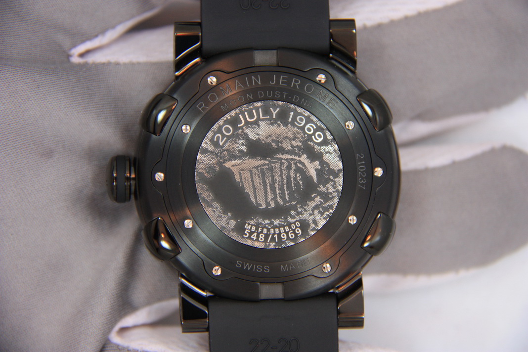 В состав корпуса часов входят фрагменты знаменитого космического корабля Apollo-XI, который участвовал в первой высадке человека на Луну. Задняя крышка украшена гравировкой, изображающей отпечаток подошвы скафандра Нейла Армстронга на лунной поверхности ('The first step on the Moon') 20 июля 1969 года, когда он спустился на ее поверхность. Циферблат выполнен в форме поверхности Луны и украшен миниатюрными копиями кратеров, покрытых настоящей лунной пылью. Каучуковый ремешок содержит в себе волокна взятые из скафандров астронавтов.