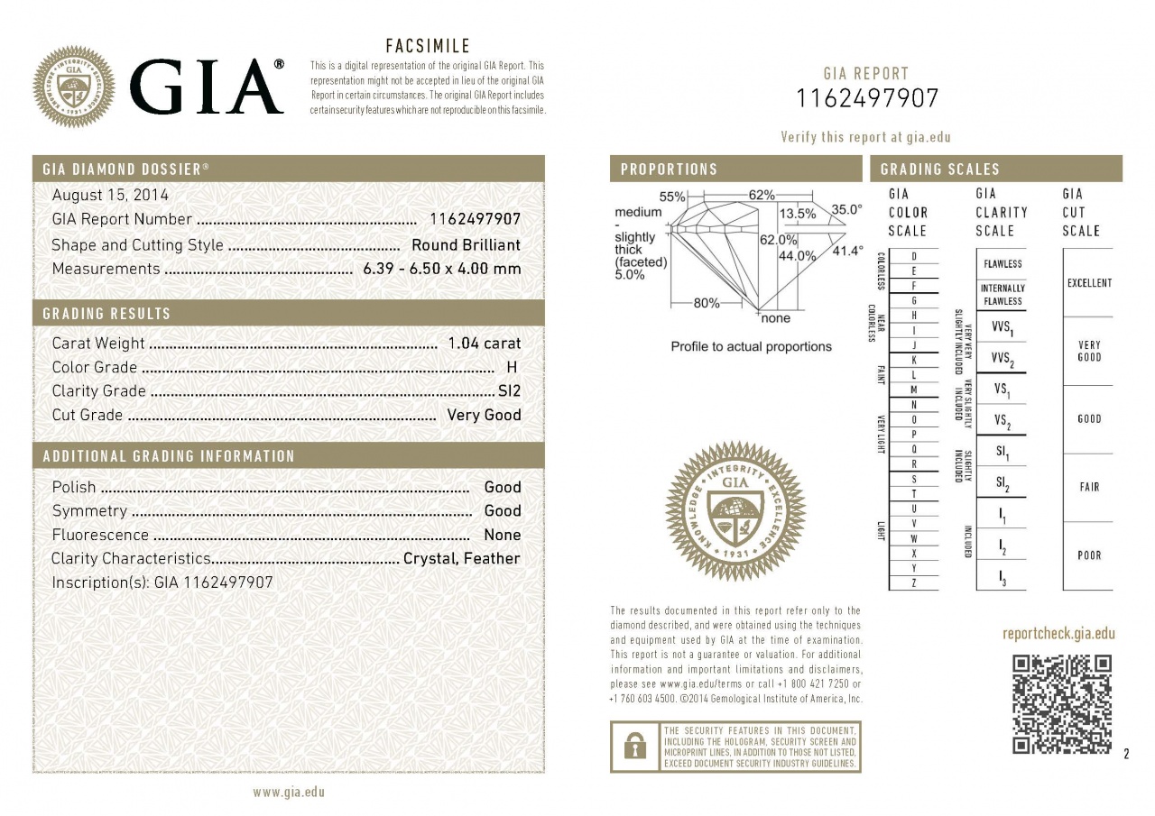 ~~~Кольцо из платины с бриллиантом 1,04 карат (сертификат GIA)~~~