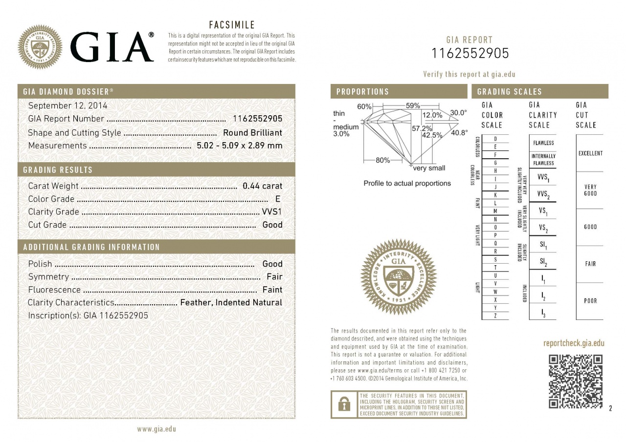 ~~~Кольцо из белого золота с безупречным бриллиантом 0,44 карат (сертификат GIA)~~~
