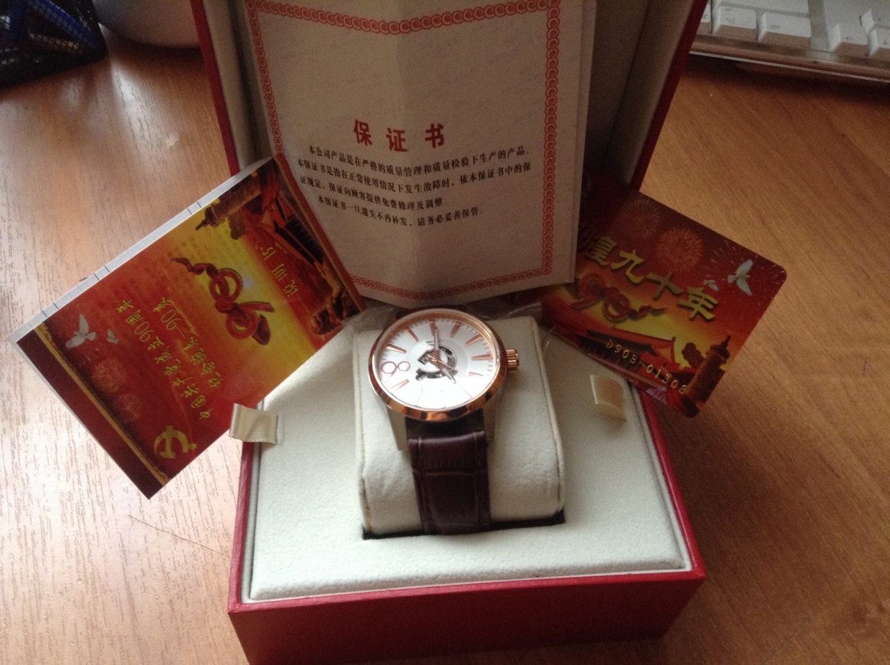 Часы марки 'Sea-Gull' на циферблате которых с гордостью написано 'China made'. Фабрика основаная в 1955 году за последние 10-15 лет достигла небывалых для китайской часовой индустрии высот. Механизмы 'Sea-Gull' устанавливаются в часы известных брендов, включая 'швейцарию' и множество копий оригинальных и дорогих часов. А в коллекции часов 'Sea-Gull' выпускаемых под собственным брендом, есть модели с двойным турбийоном, стоимость которых начинается от 30.000 долларов.