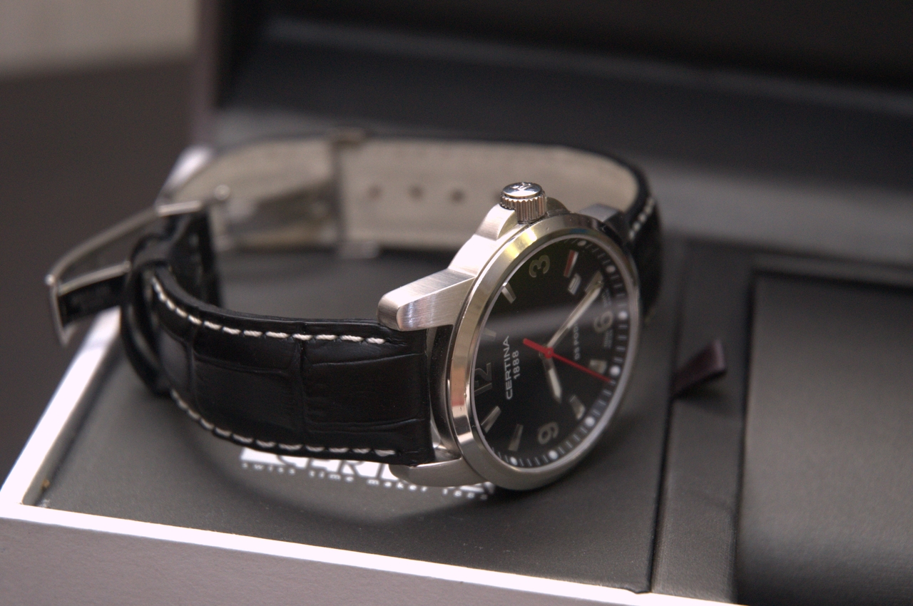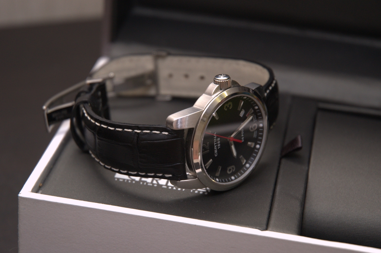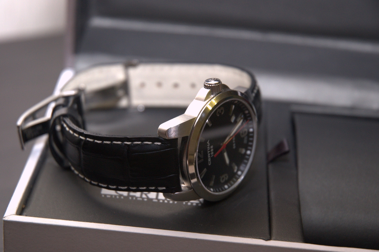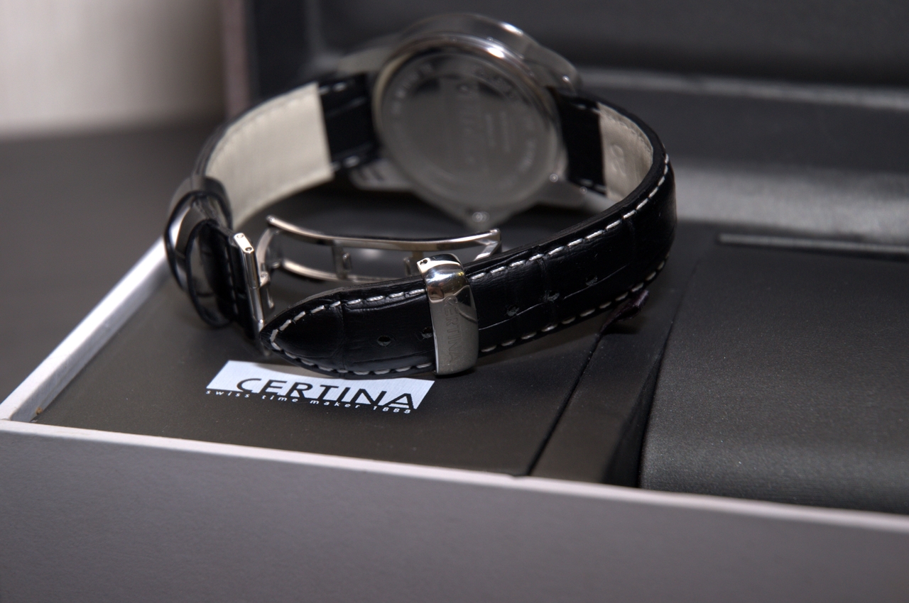 Черный (новый) кожаный простроченный ремешок с оригинальной застежкой-бабочкой