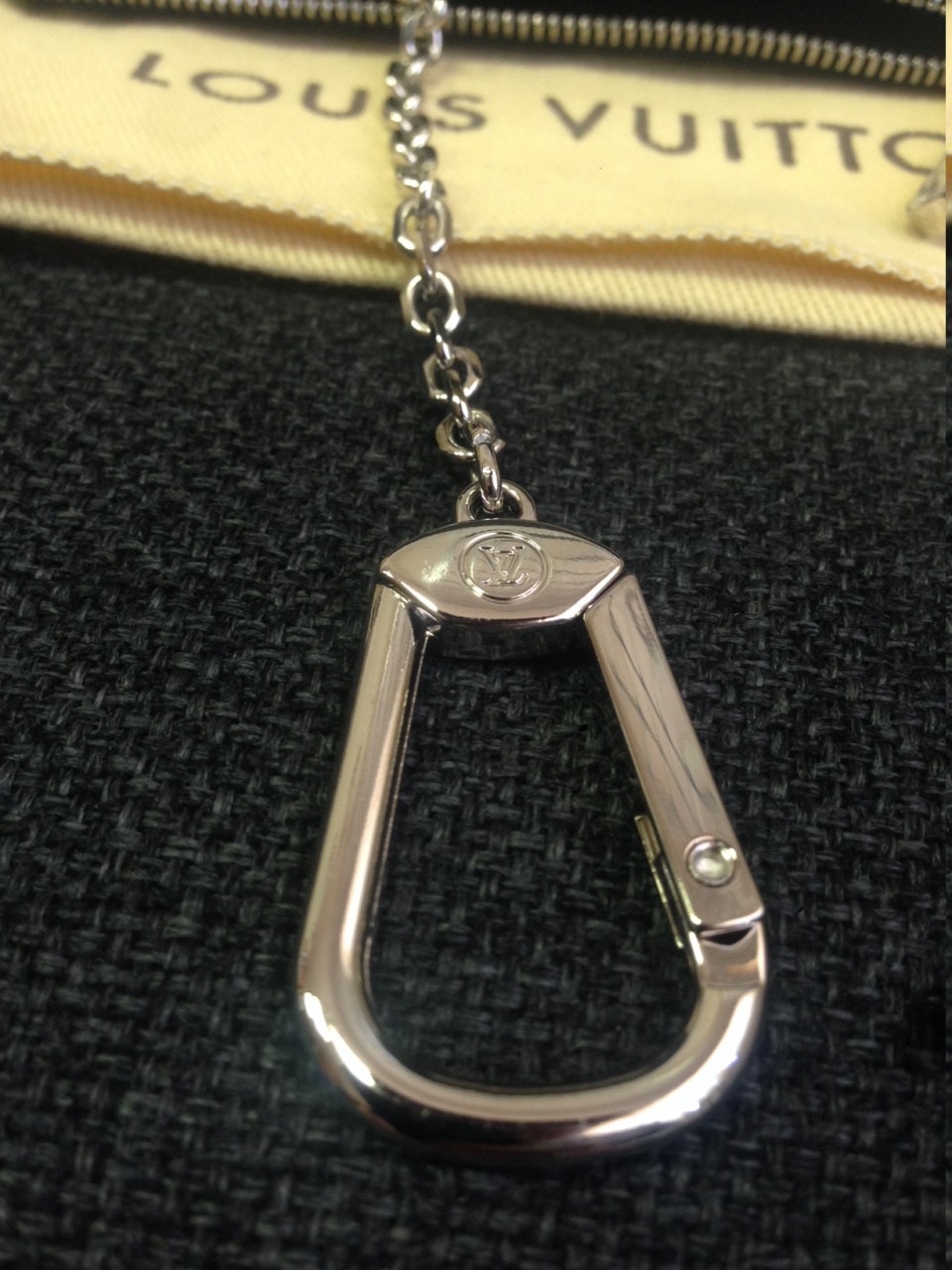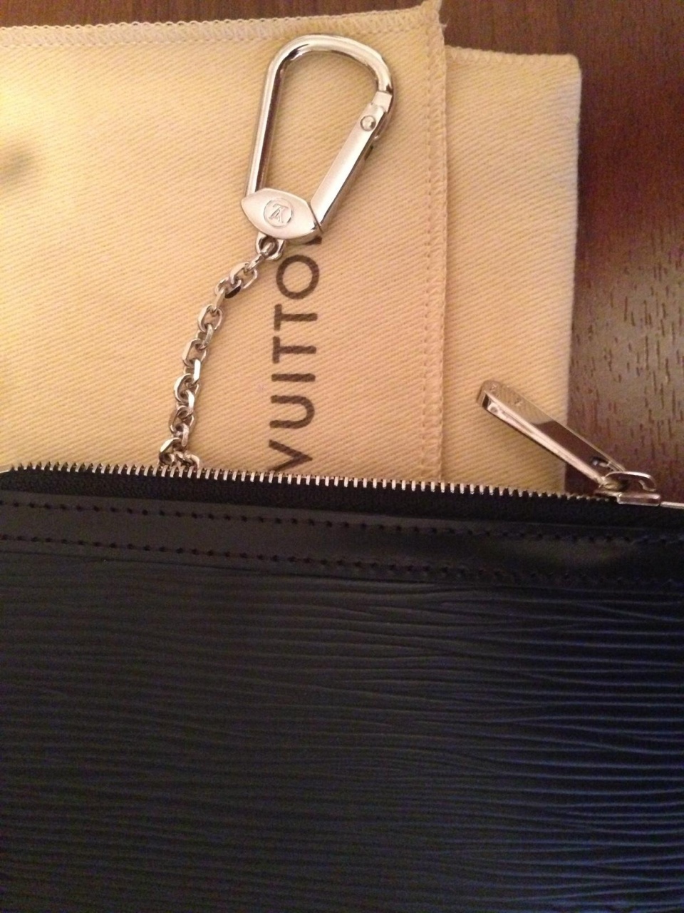 Этот аксессуар для ключей и мелочи выполнен из кожи Epi. Цепочка и карабин позволяют прикреплять ключницу к кошельку Astrid или к большинству сумок Louis Vuitton при помощи D-образного кольца.