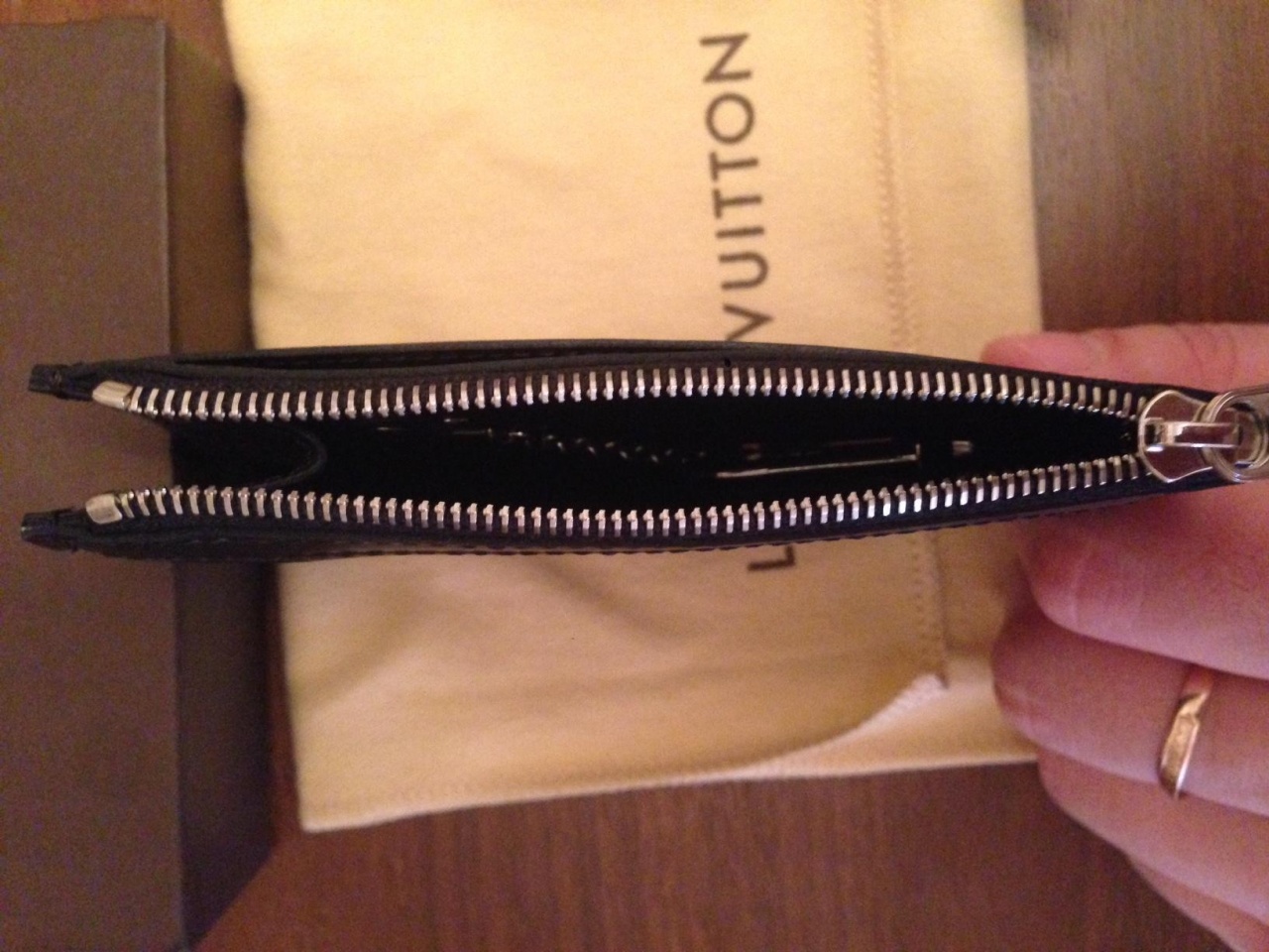 - Кожа Epi, подкладка из зернистой телячьей кожи, детали из посеребренной латуни;