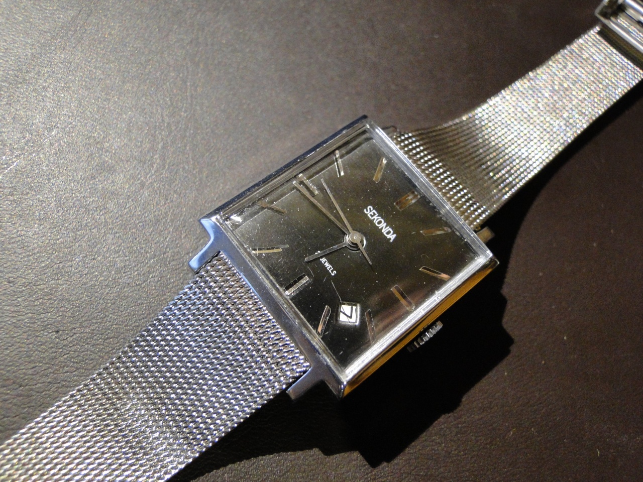Вот хочу показать "из последнего" - иностранка, в девичестве Слава 2414, в замужестве - SECONDA по цене £ 14,99. Очень красивый графитовый циферблат, но не в моих силах передать цвет на фото. Тут yurikim нужен