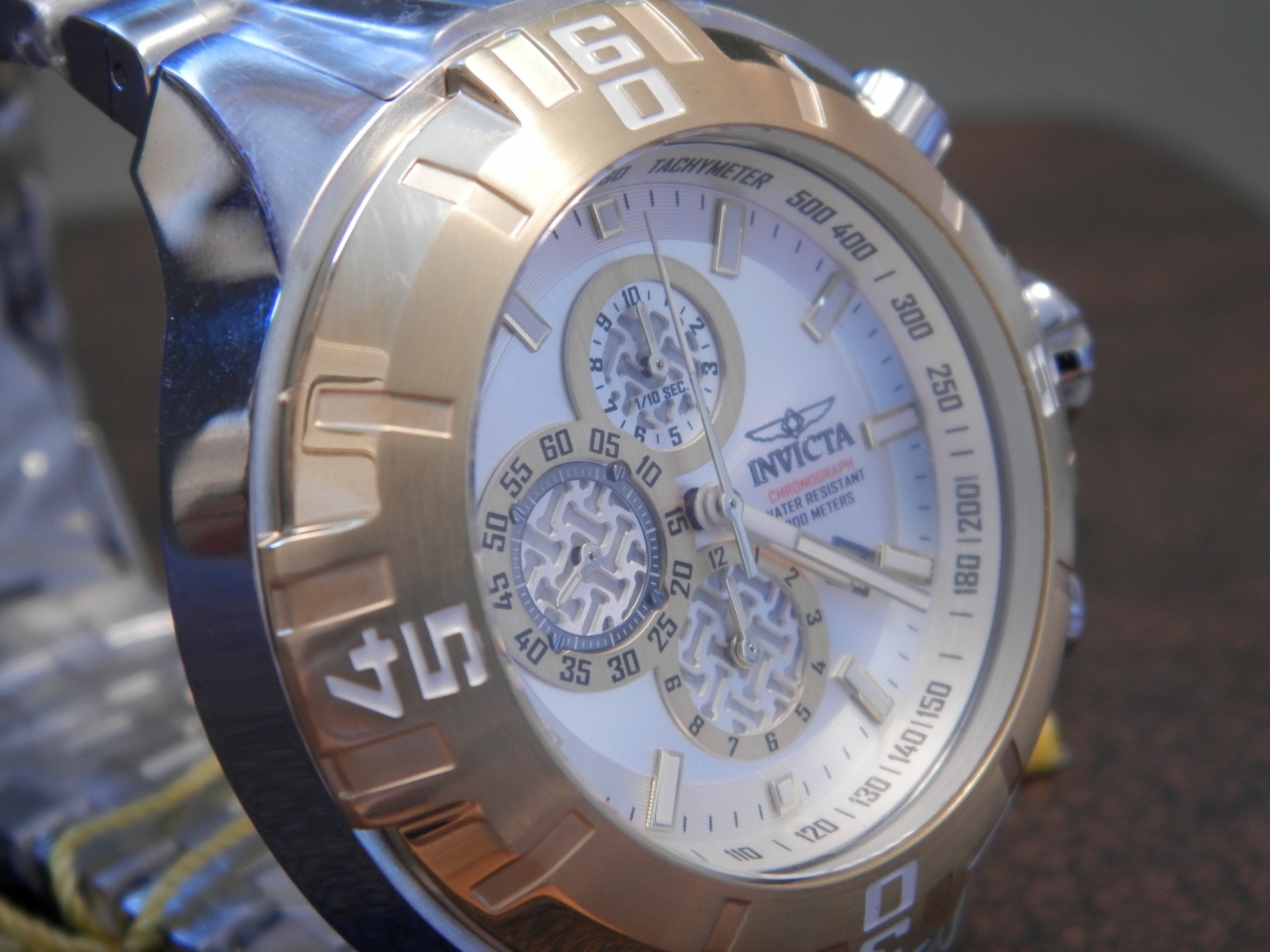 Муж. Invicta Pro Diver Master Of The Oceans Chrono,золото+серебро,300 м.