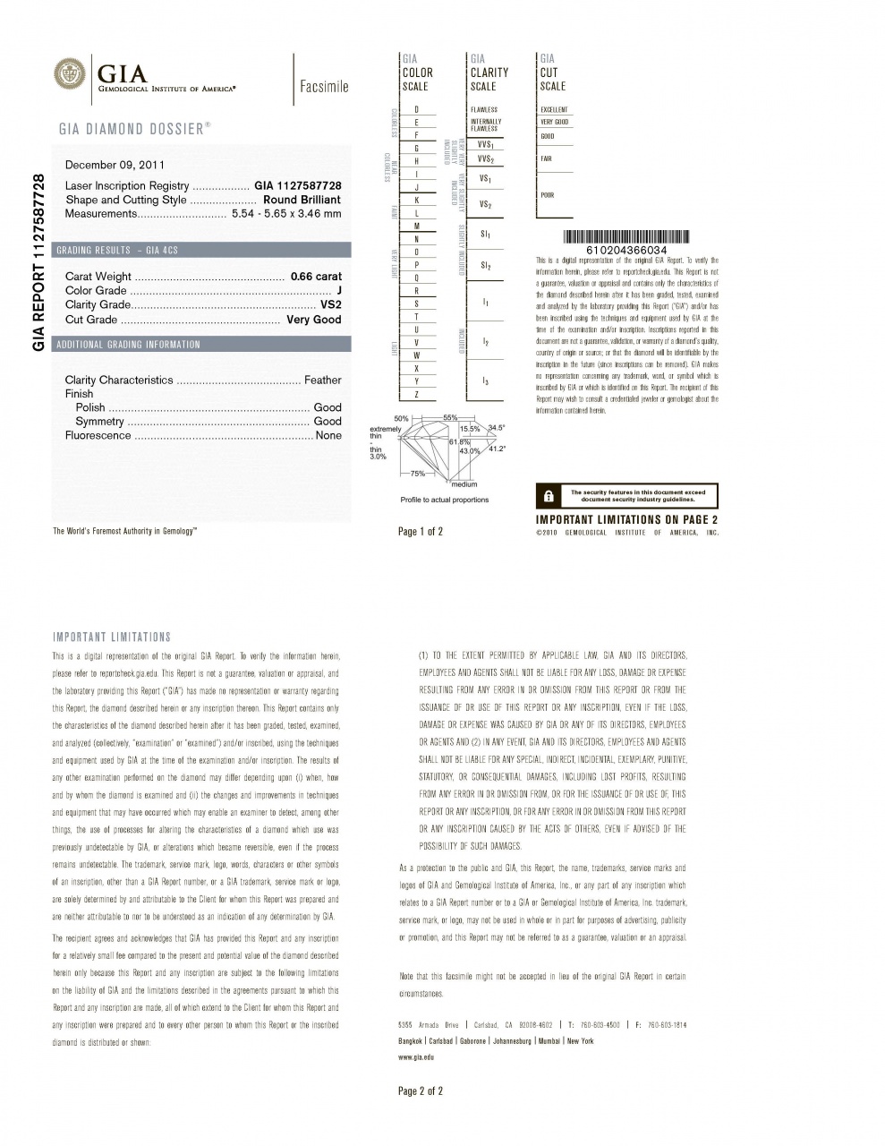 Бриллианты весом 0,66 карат, цвет J (7), чистота VS2 (5)