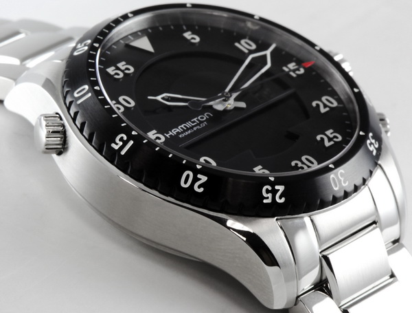 Сложные, многофункциональные часы Khaki FLIGHT TIMER с их цифровым и аналоговым дисплеями - новая веха в истории пилотских часов. В них инкорпорирована лётная книжка лётчика, рассчитанная на запись информации по 20 полетам и 99 приземлениям. Часы обладают целым спектром практических функций, в числе которых два часовых пояса, время по UTC (Всемирное координированное время), а также будильник, хронограф, обратный отсчет, регистрация времени полета, указание температуры по МСА (Международная стандартная атмосфера) и вечный календарь.