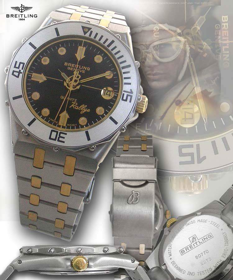 This Breitling was designed and tested by world famous yachtsman Eric Tabarly. Eric Tabarly was the French yachtsman that won the "single handed trans-atlantic race" twice. Once in 1964, and again in 1976. Tabarly was swept overboard in 1998, and was lost at sea. The watch features the tabarly signature on the dial, as well as "designed and tested by Eric Tabarly" on the back plate. The watch features a compass bezel and quickset date at 3.